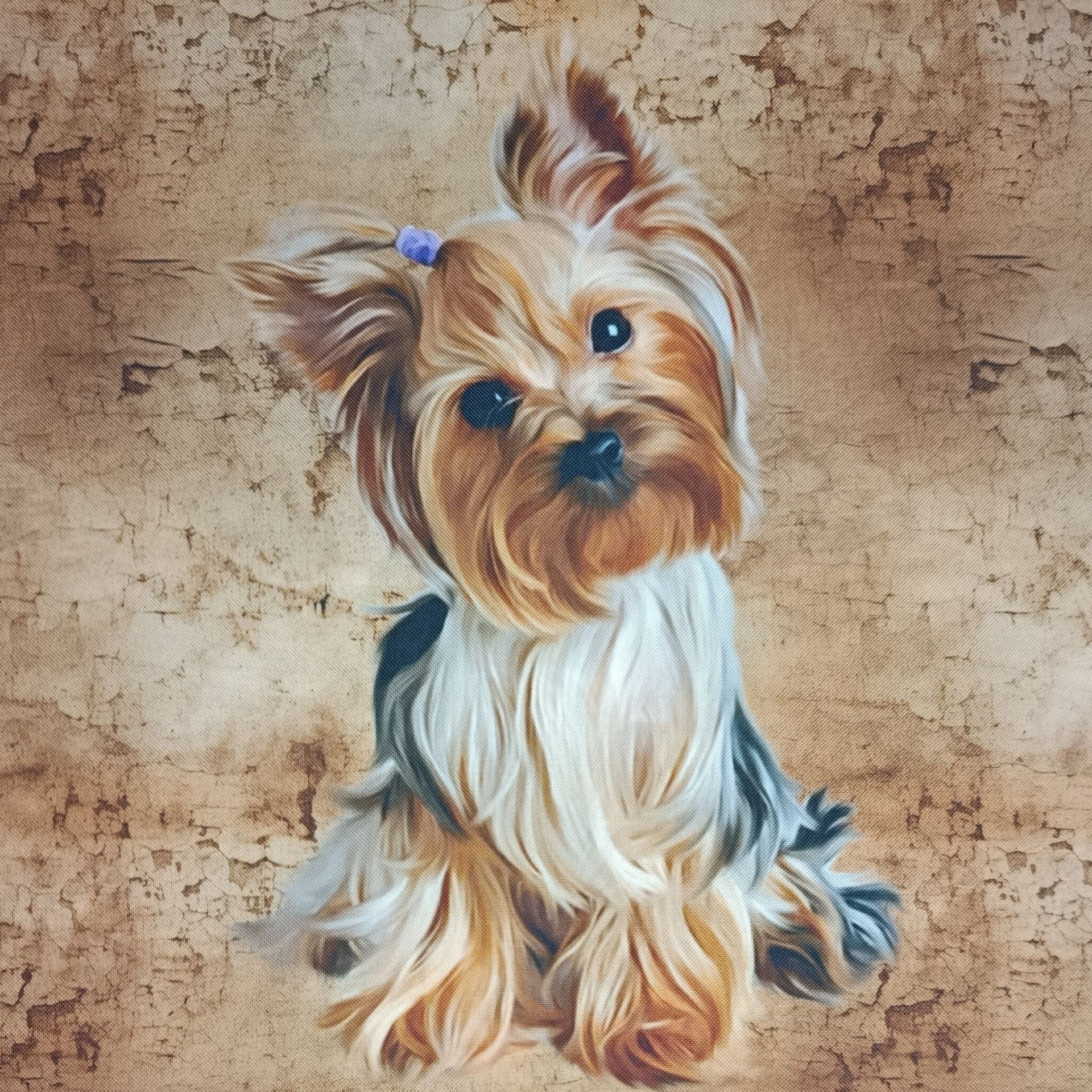 Jorkšír je drobný pes s výrazným šarmem a krásnou srstí. Přestože je malý, má odvážnou a sebevědomou povahu. Motiv jorkšíra symbolizuje eleganci a noblesu.
