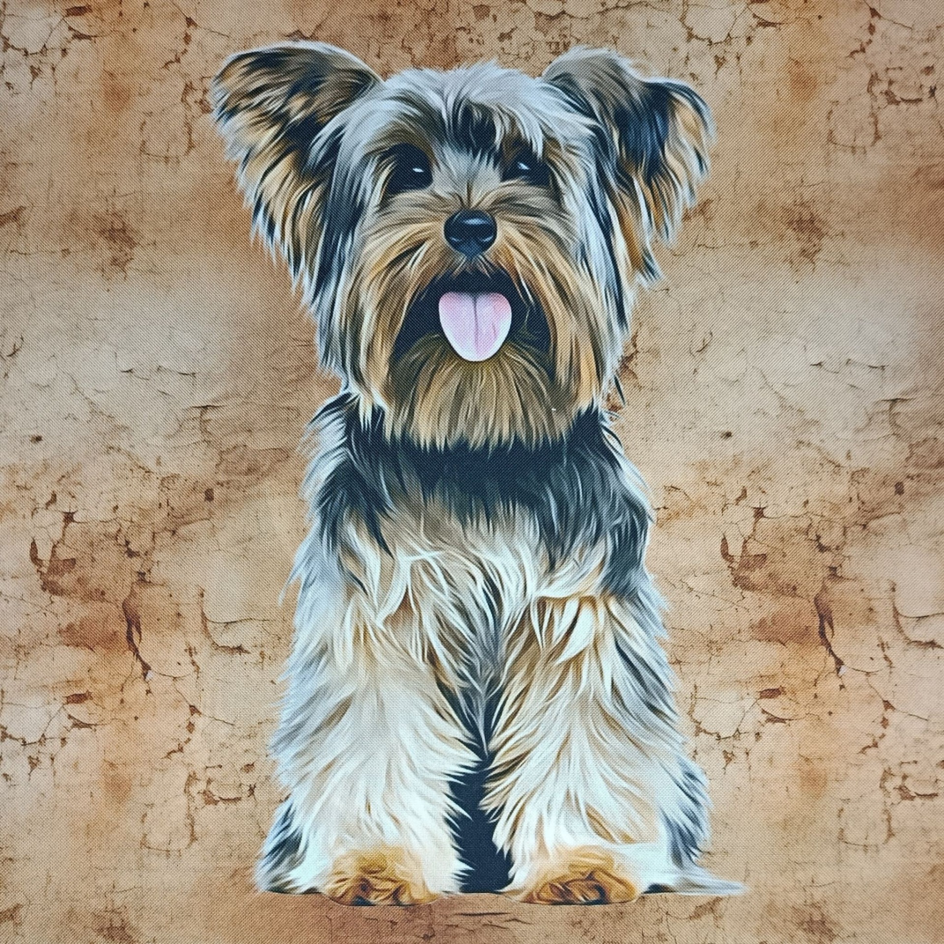 Jorkšír je drobný pes s výrazným šarmem a krásnou srstí. Přestože je malý, má odvážnou a sebevědomou povahu. Motiv jorkšíra symbolizuje eleganci a noblesu.