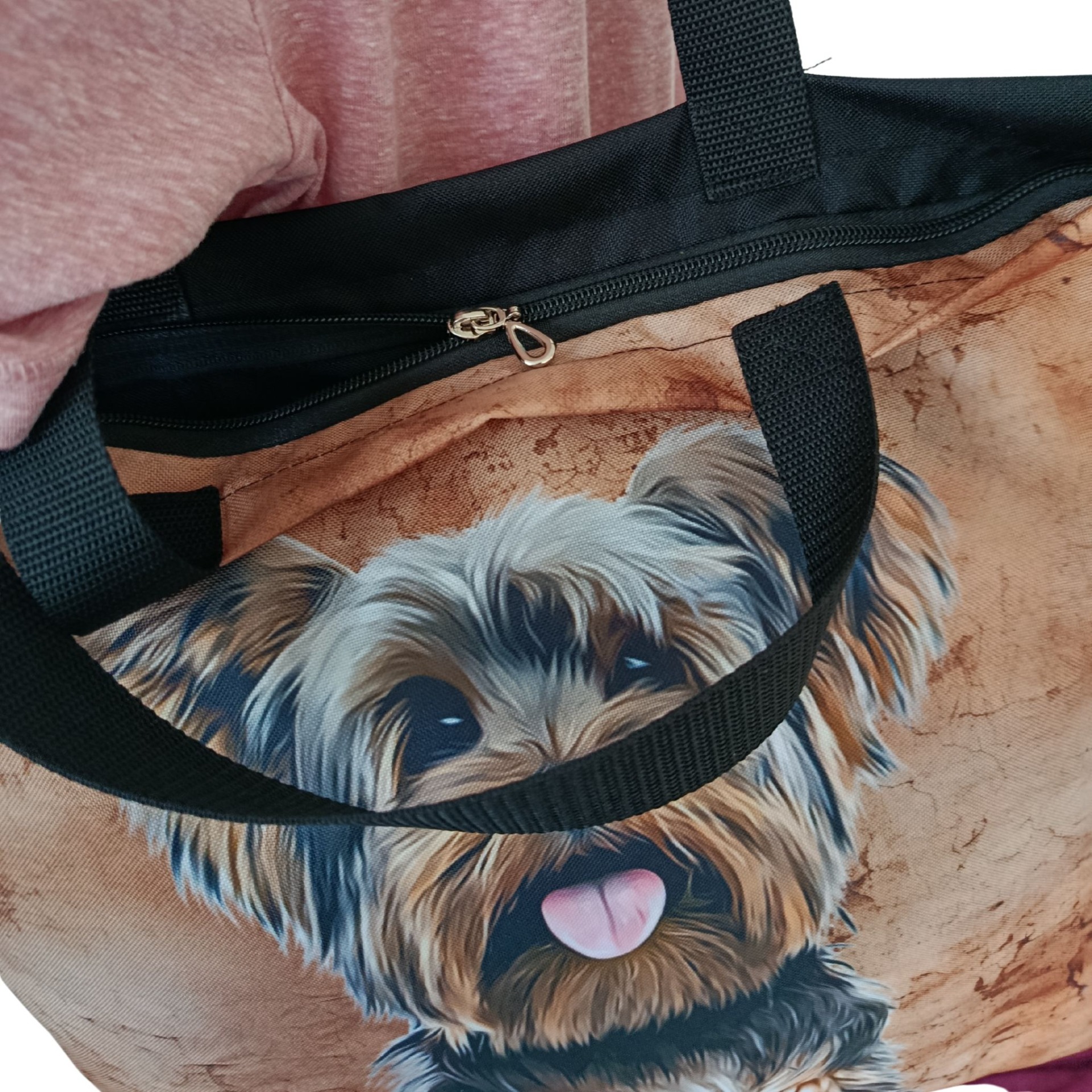 Nákupní taška se zipem odlehčená bez podšívky pro snadnou skladnost. Ucha na rameno i do ruky 70 cm. 40 x 40 cm