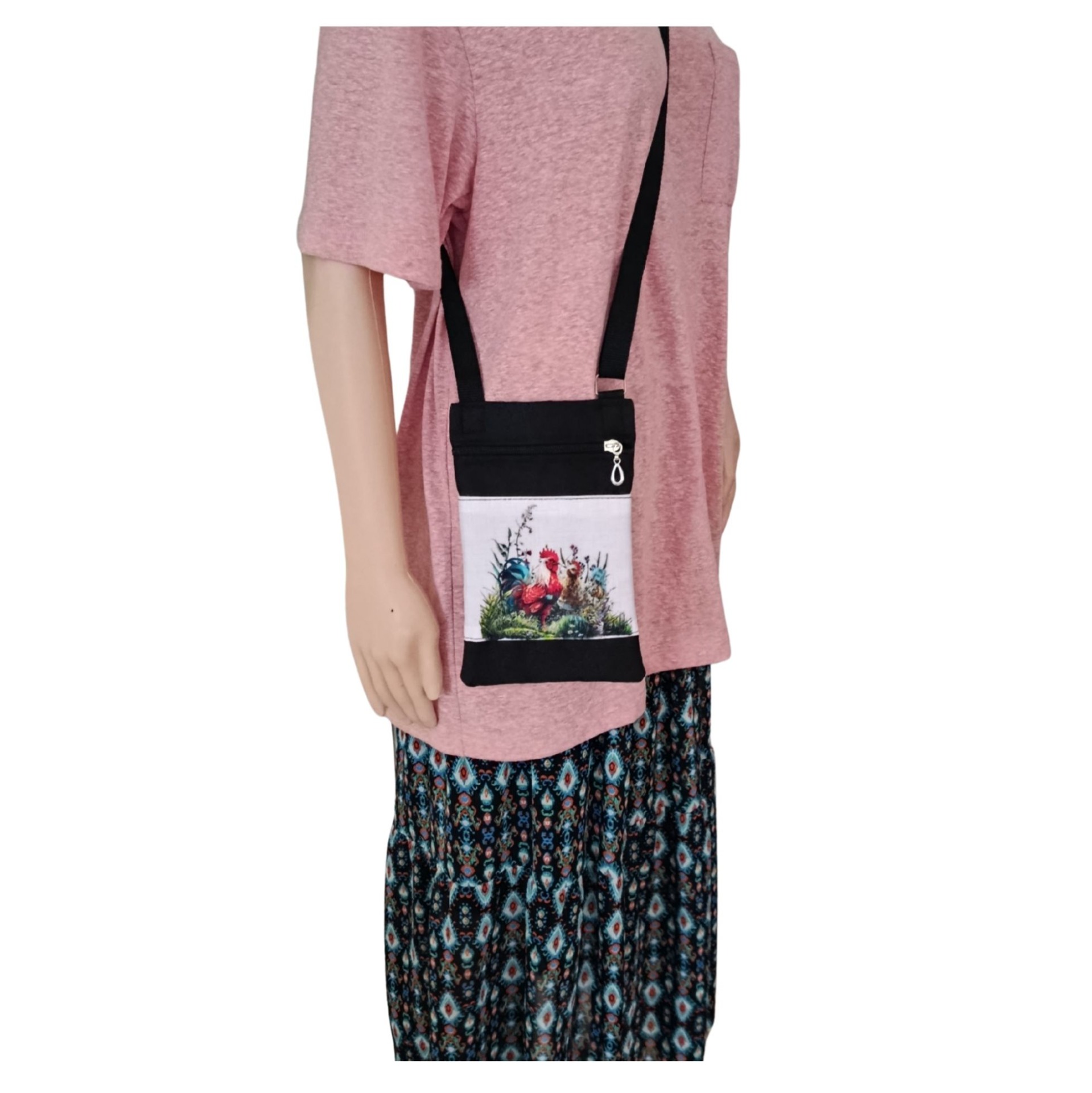 Kabelečka má nastavitelný popruh, takže ji pohodlně nosí dítě i dospělá osoba. Uzavírá se zipem a uvnitř je další kapsička na zip – ideální na karty, drobné peníze nebo klíče.