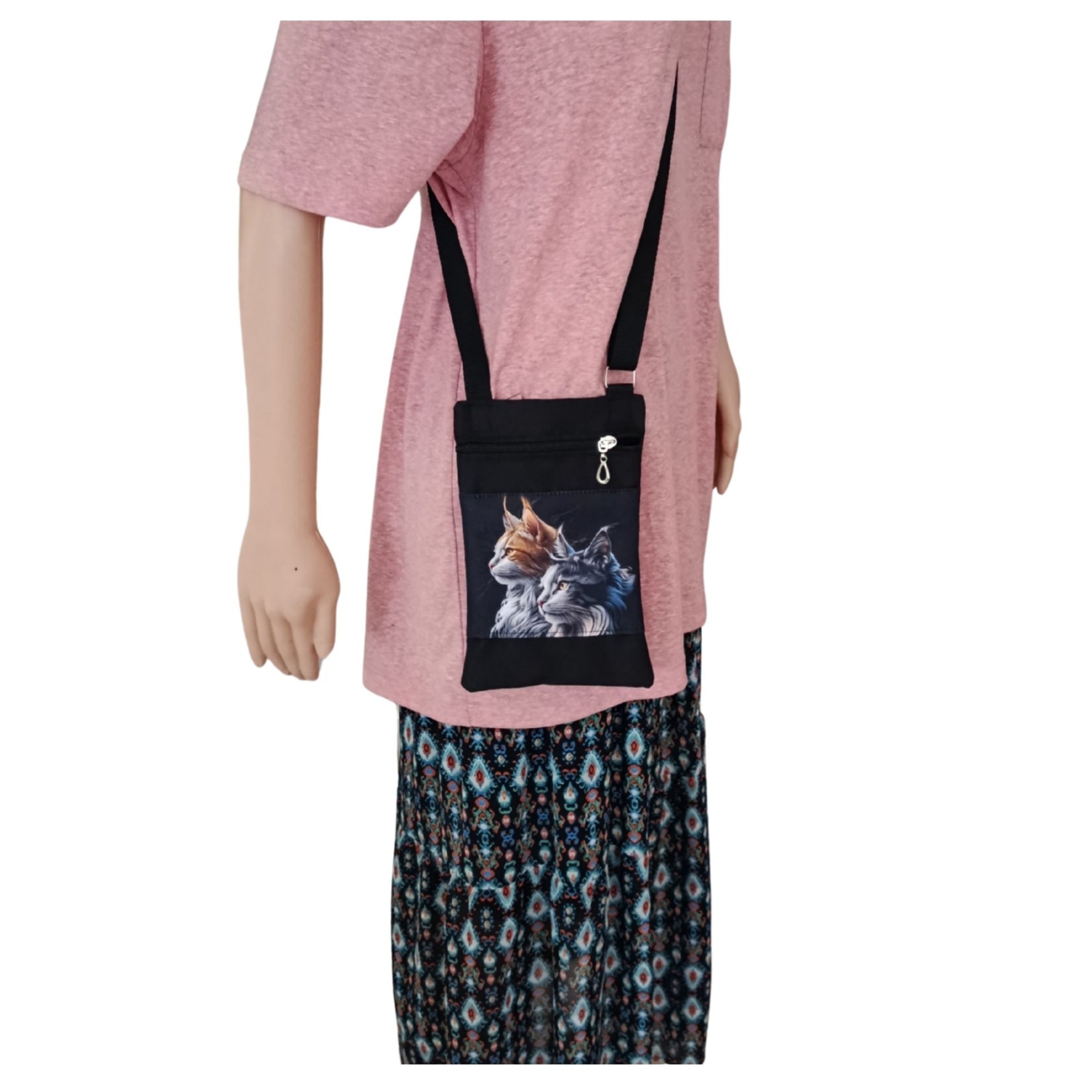 Kabelečka má nastavitelný popruh, takže ji pohodlně nosí dítě i dospělá osoba. Uzavírá se zipem a uvnitř je další kapsička na zip – ideální na karty, drobné peníze nebo klíče.