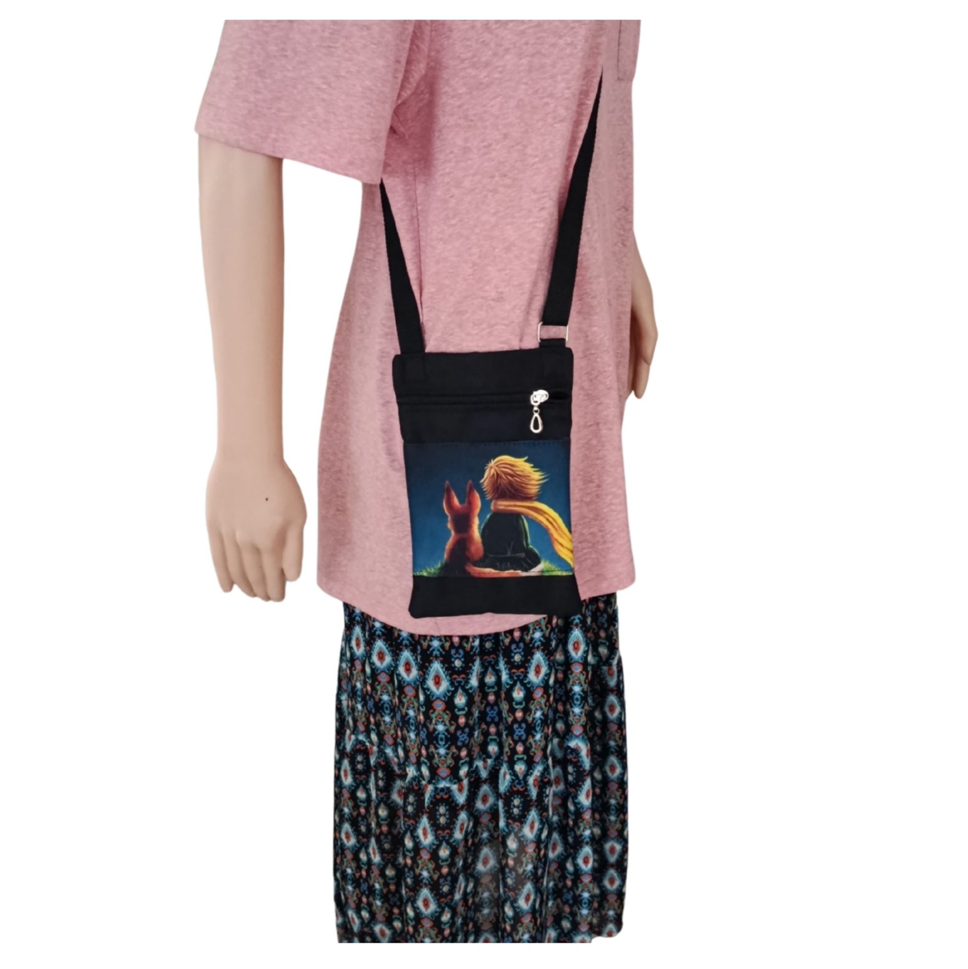 Kabelečka má nastavitelný popruh, takže ji pohodlně nosí dítě i dospělá osoba. Uzavírá se zipem a uvnitř je další kapsička na zip – ideální na karty, drobné peníze nebo klíče.
