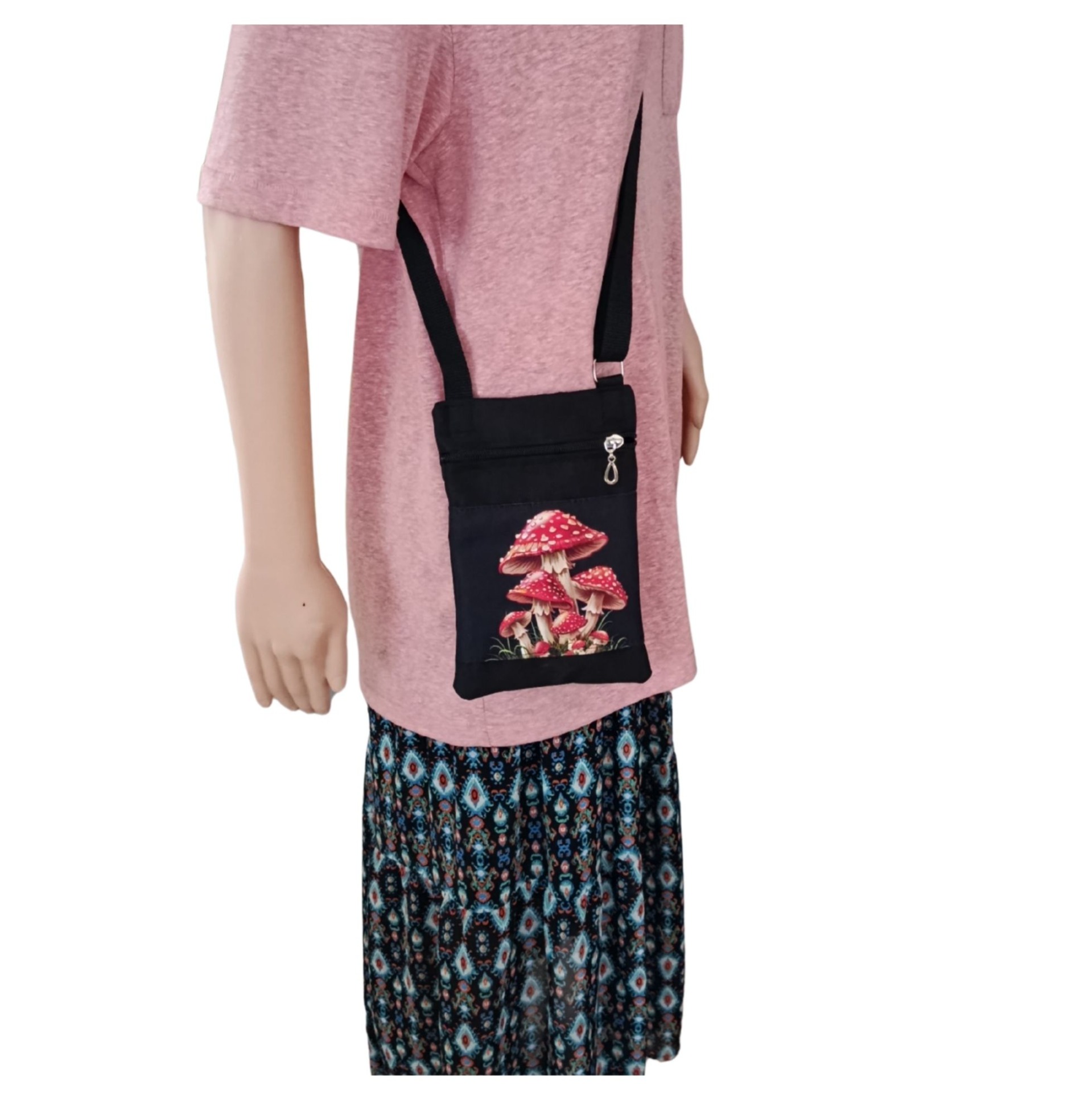 Kabelečka má nastavitelný popruh, takže ji pohodlně nosí dítě i dospělá osoba. Uzavírá se zipem a uvnitř je další kapsička na zip – ideální na karty, drobné peníze nebo klíče.