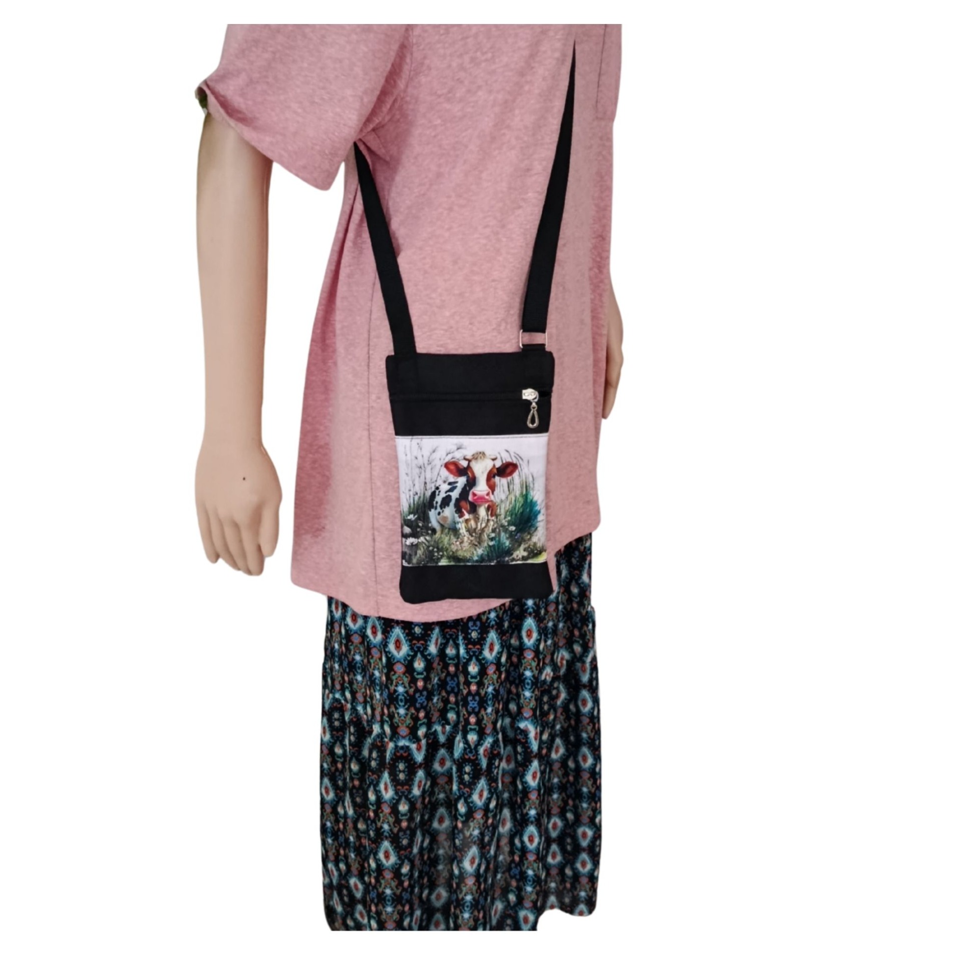 Praktická kabelečka na mobil s nastavitelným popruhem a vnitřní kapsou na zip.