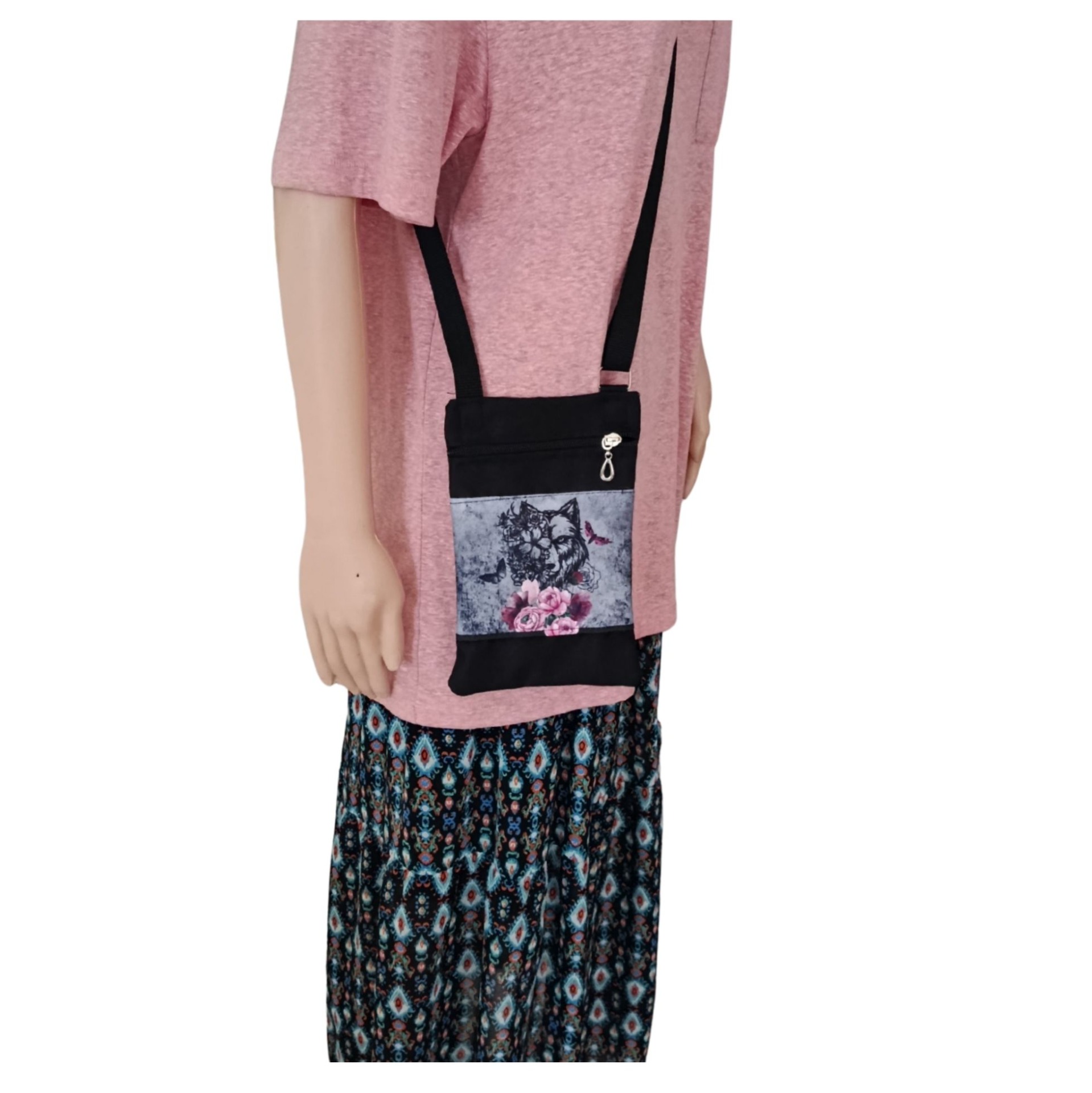 Kabelečka má nastavitelný popruh, takže ji pohodlně nosí dítě i dospělá osoba. Uzavírá se zipem a uvnitř je další kapsička na zip – ideální na karty, drobné peníze nebo klíče.