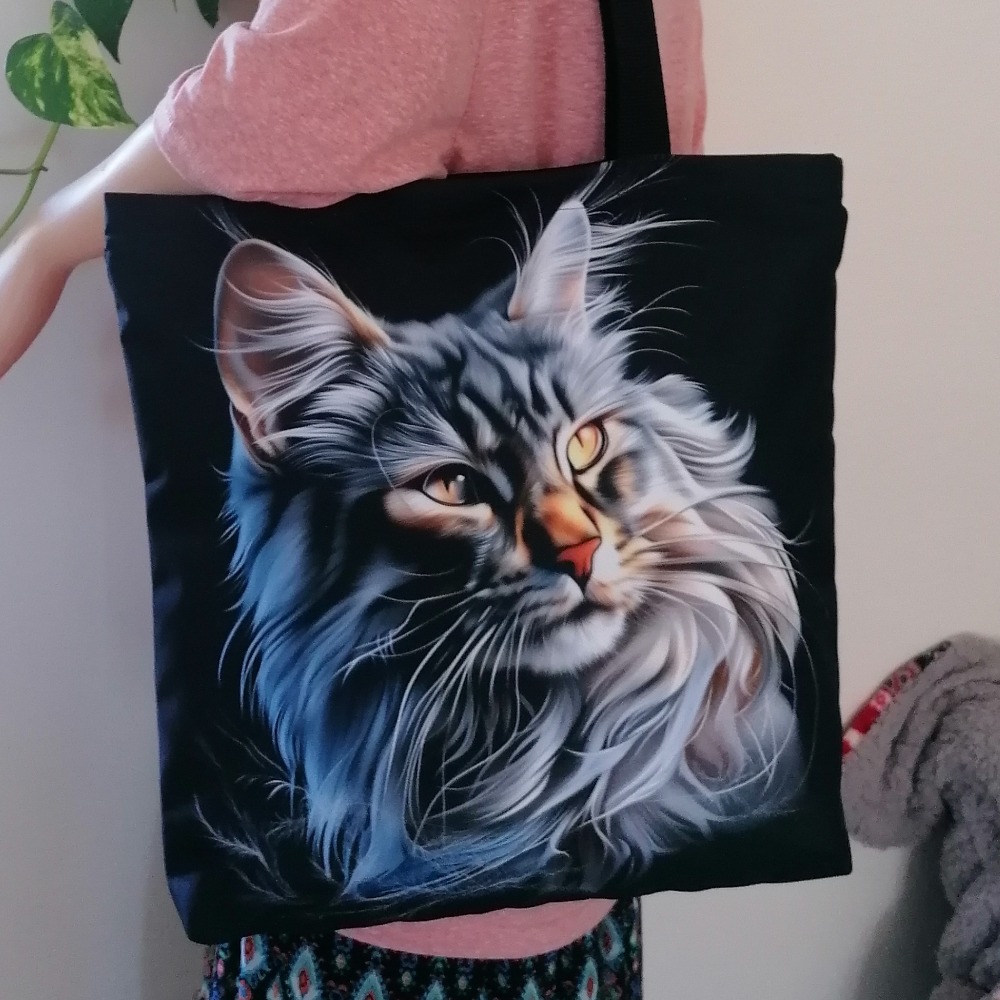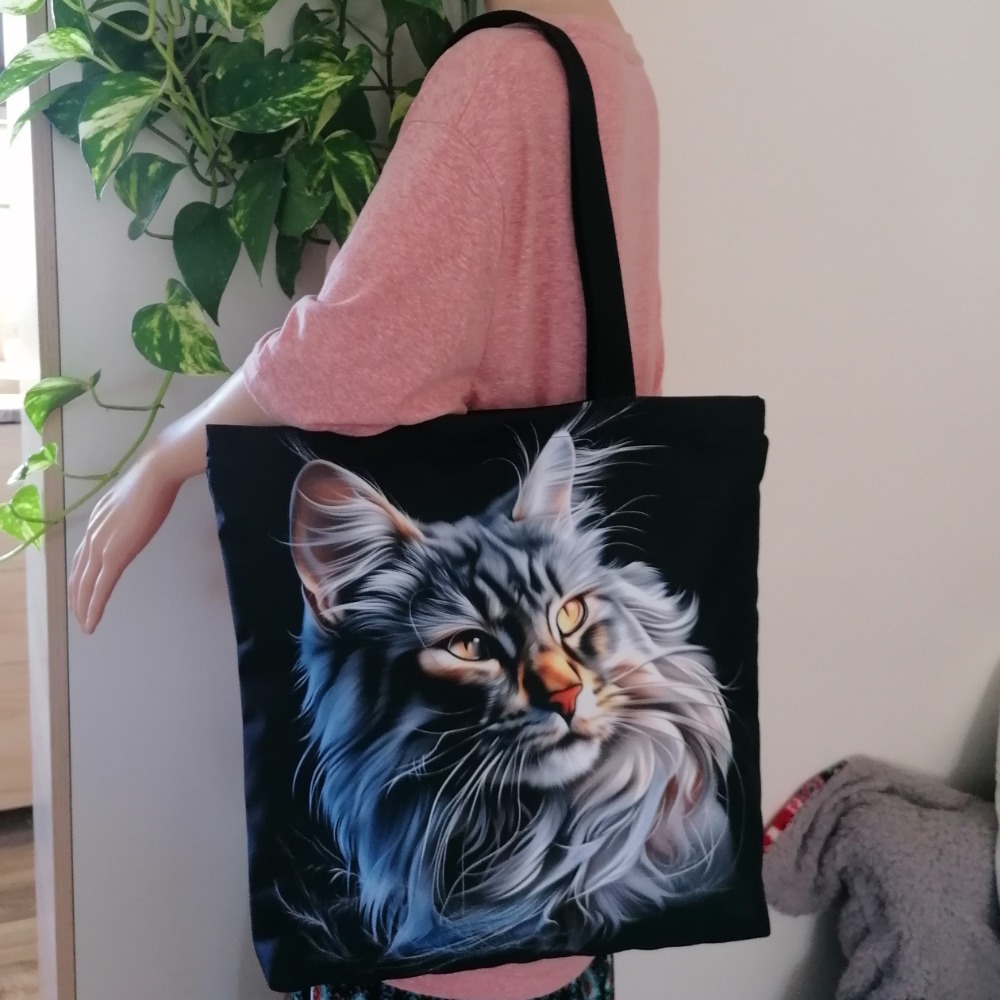 Rozměr tašky: šířka 40 x 36 cm + dno 10 cm. Délka popruhů je cca 60 cm vhodná na rameno, případně do ruky dle výšky postavy. Taška byla při focení vycpána polštářem 40 x 40 cm. Přední strana se zvoleným motivem/obrázkem, zadní strana černá.