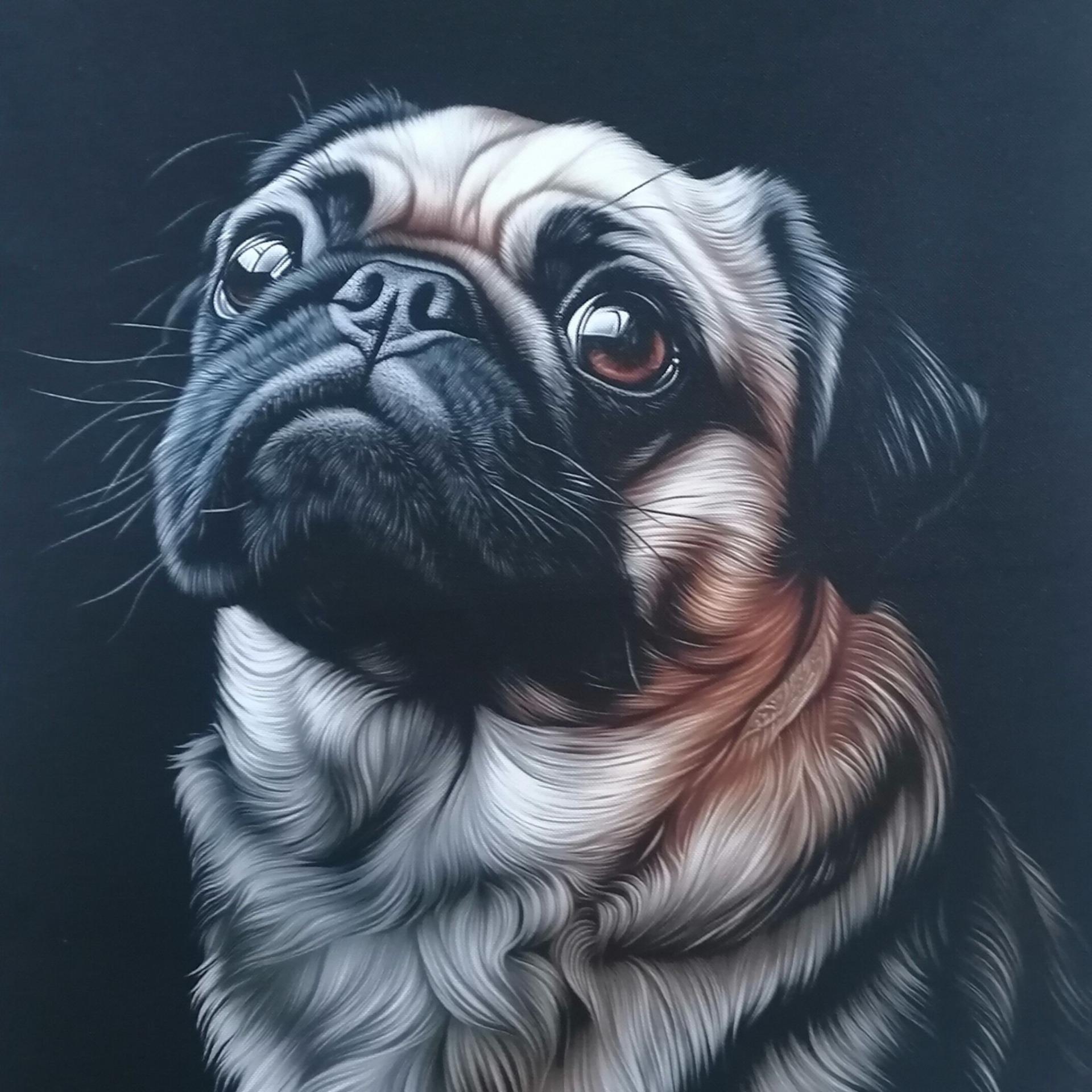 Mops je roztomilý společník s laskavou a klidnou povahou. Je známý svou oddaností a schopností rozdávat radost. Motiv mopse symbolizuje něhu a přátelství.
