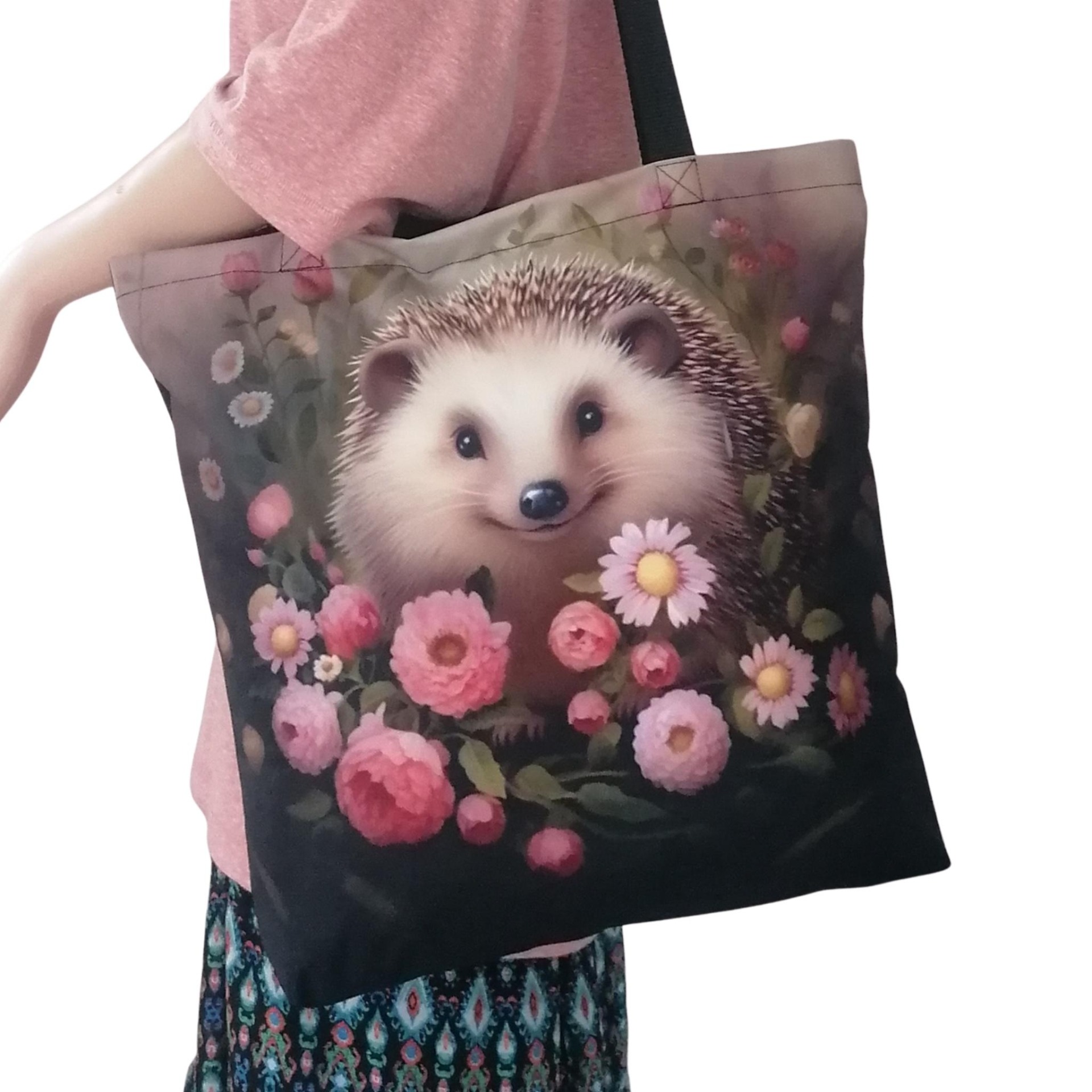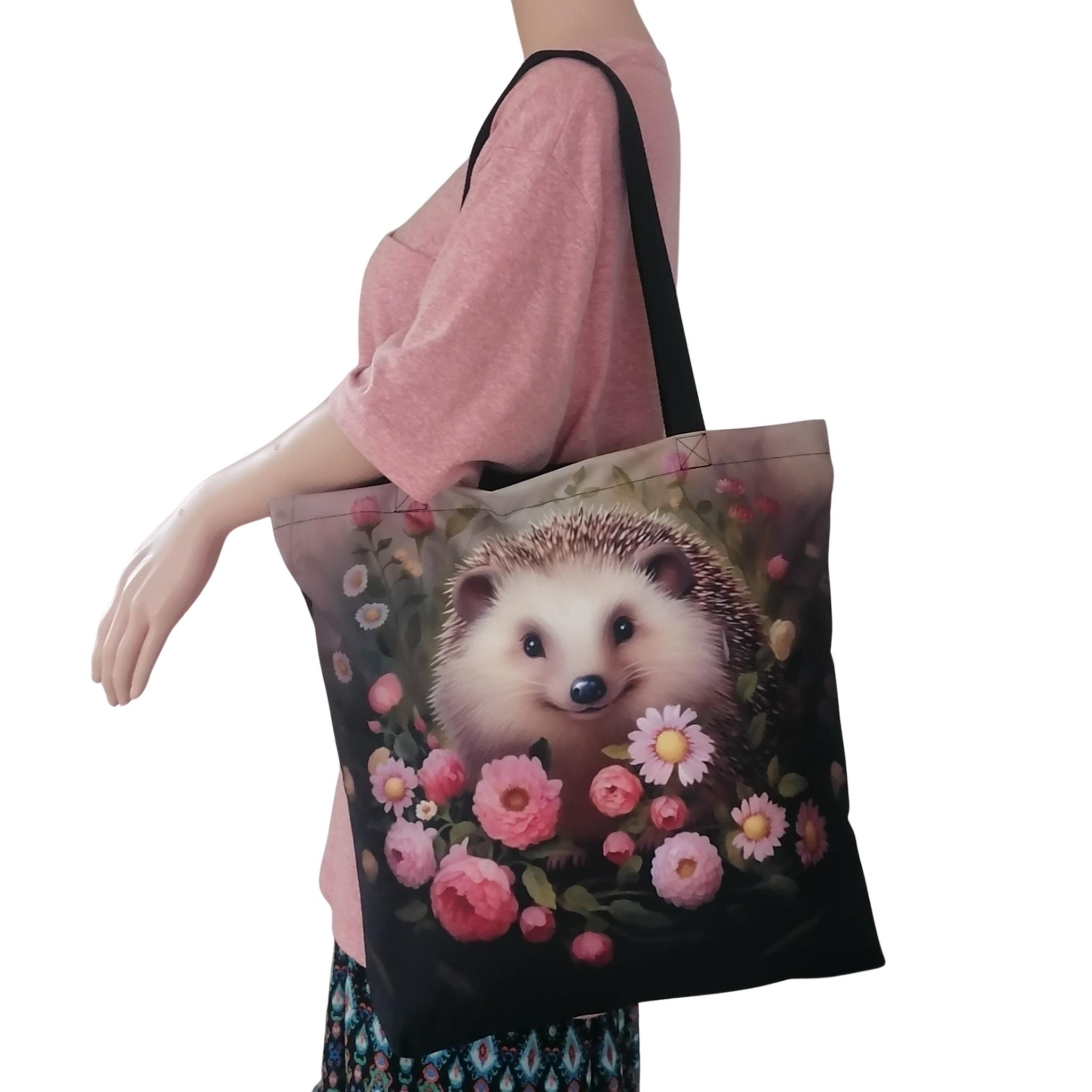 Prostorná látková nákupní taška s motivem něžného ježka, kterou využiješ na nákup, na cesty i jako lehkou tašku na každý den.