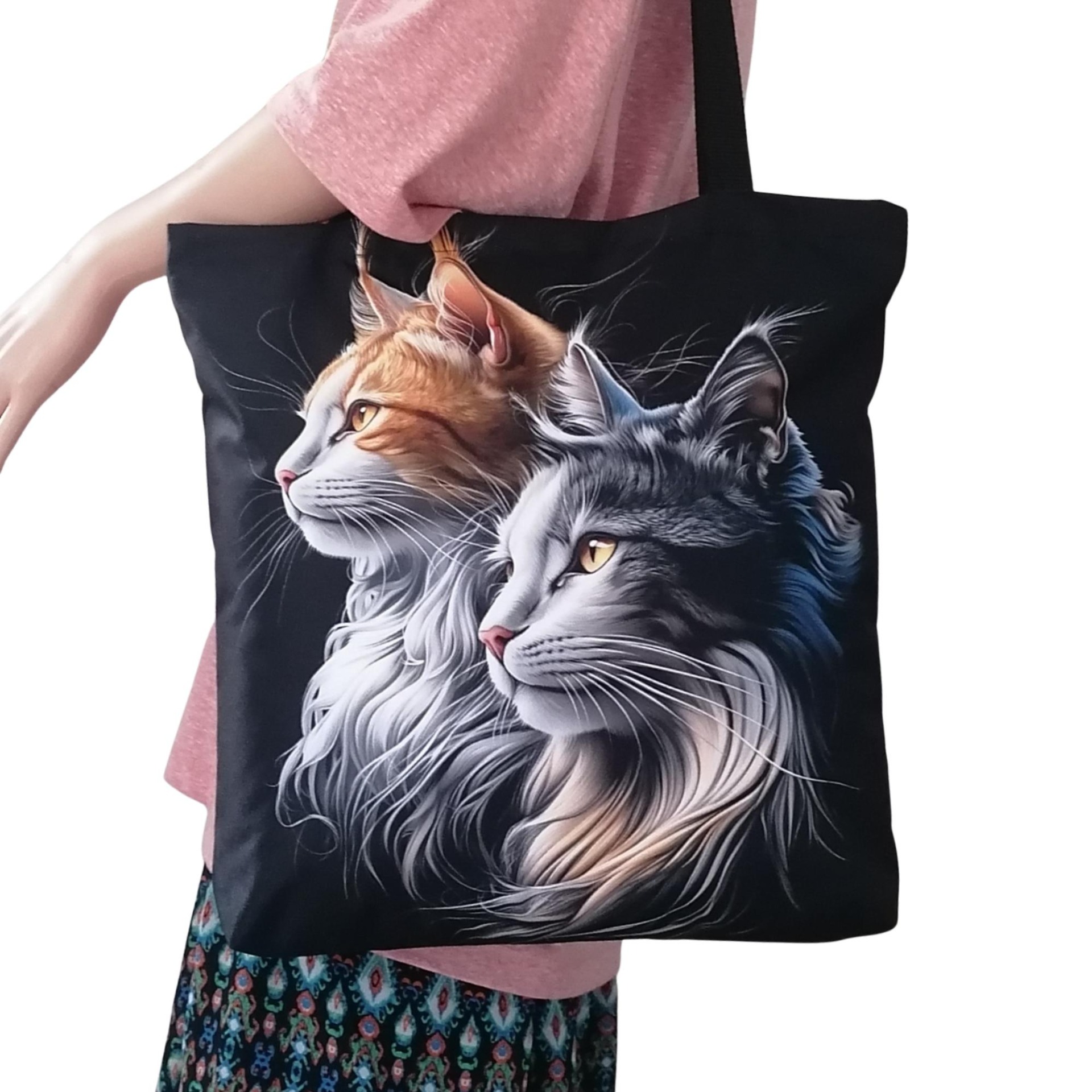 Prostorná látková nákupní taška s motivem koček mainských mývalích, kterou využiješ na nákup, na cesty i jako lehkou tašku na každý den.