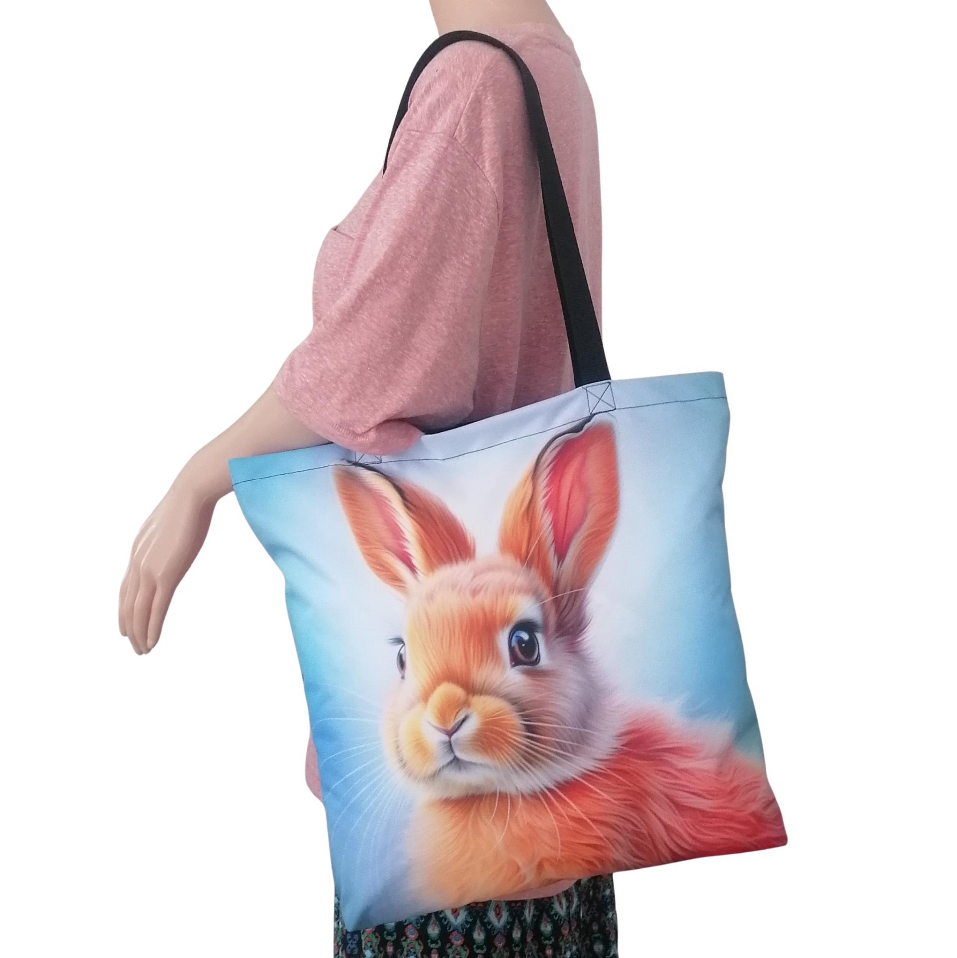 Prostorná látková nákupní taška s motivem pastelového králíčka, kterou využiješ na nákup, na cesty i jako lehkou tašku na každý den.