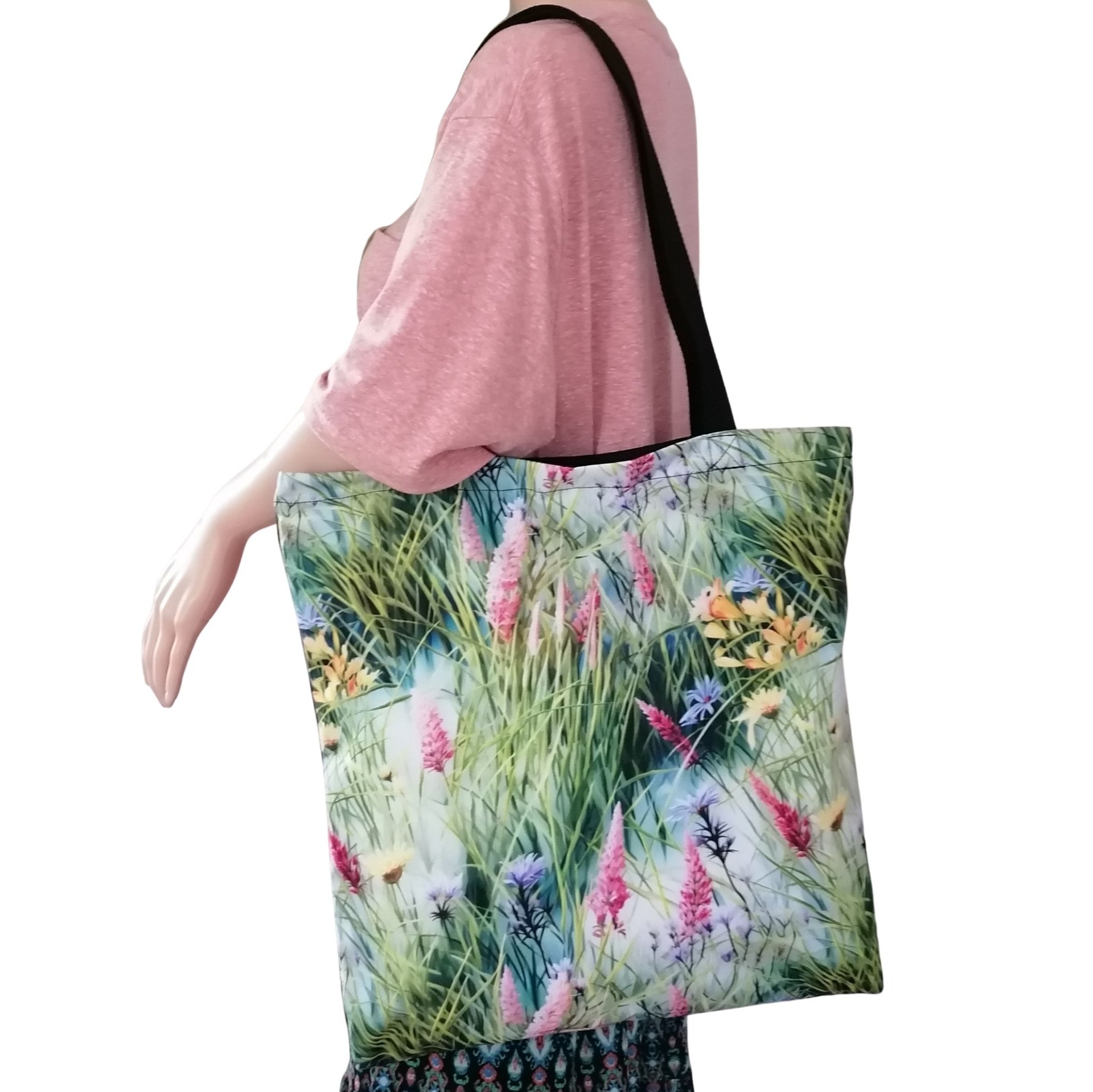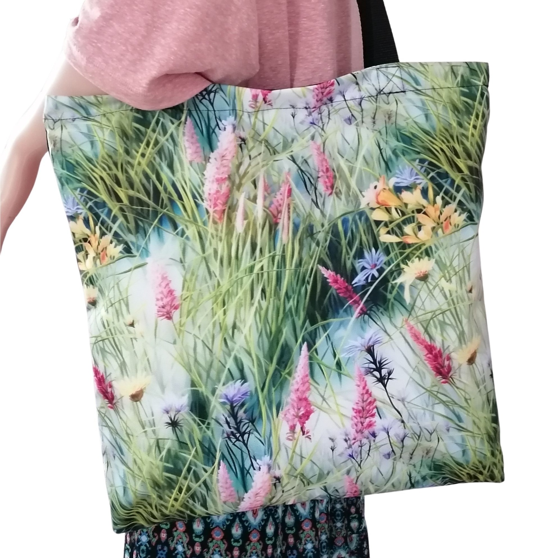 Prostorná látková nákupní taška s lučním motivem, kterou využiješ na nákup, na cesty i jako lehkou tašku na každý den.