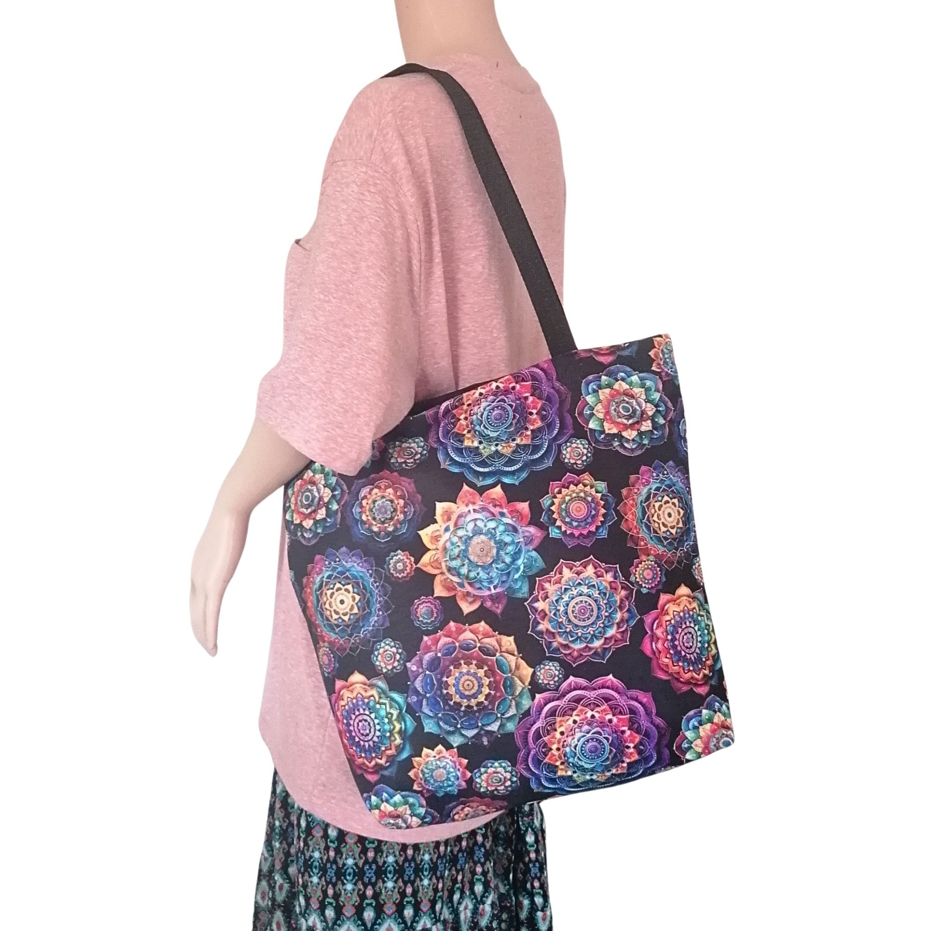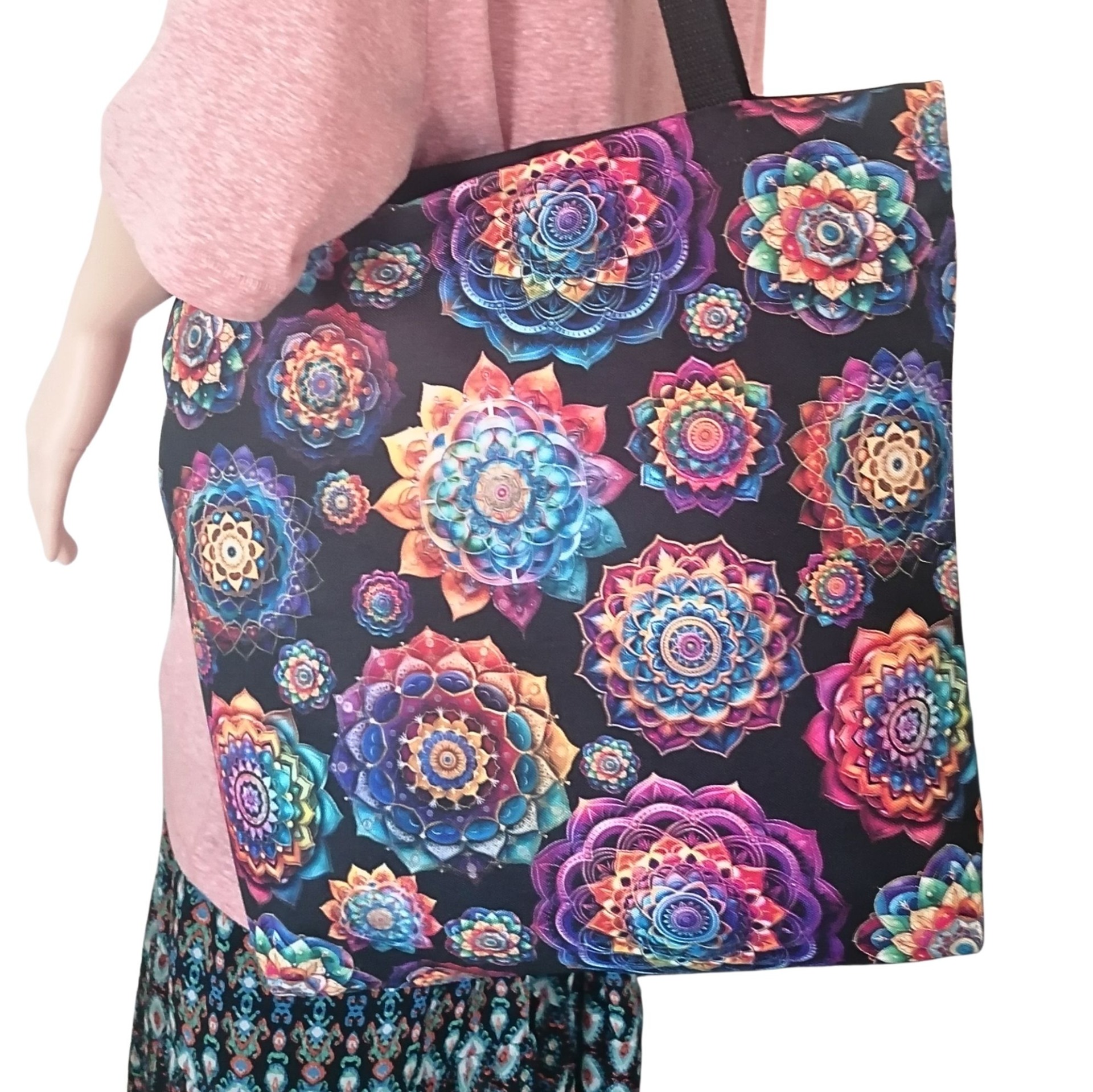 Prostorná látková nákupní taška s motivem mandaly, kterou využiješ na nákup, na cesty i jako lehkou tašku na každý den.