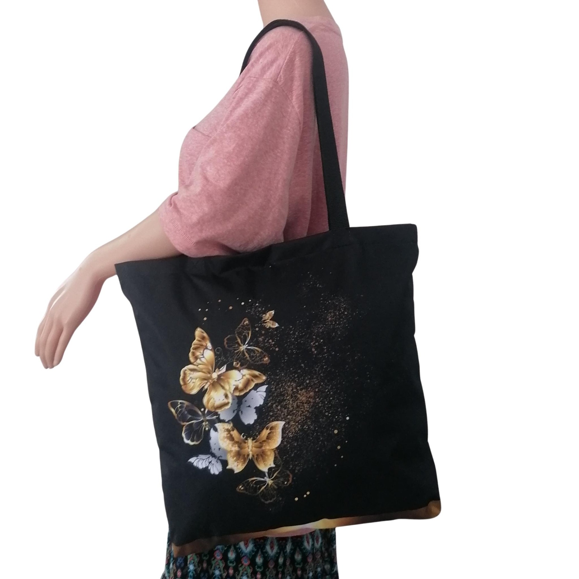Prostorná látková nákupní taška s motivem klidu motýla, kterou využiješ na nákup, na cesty i jako lehkou tašku na každý den.