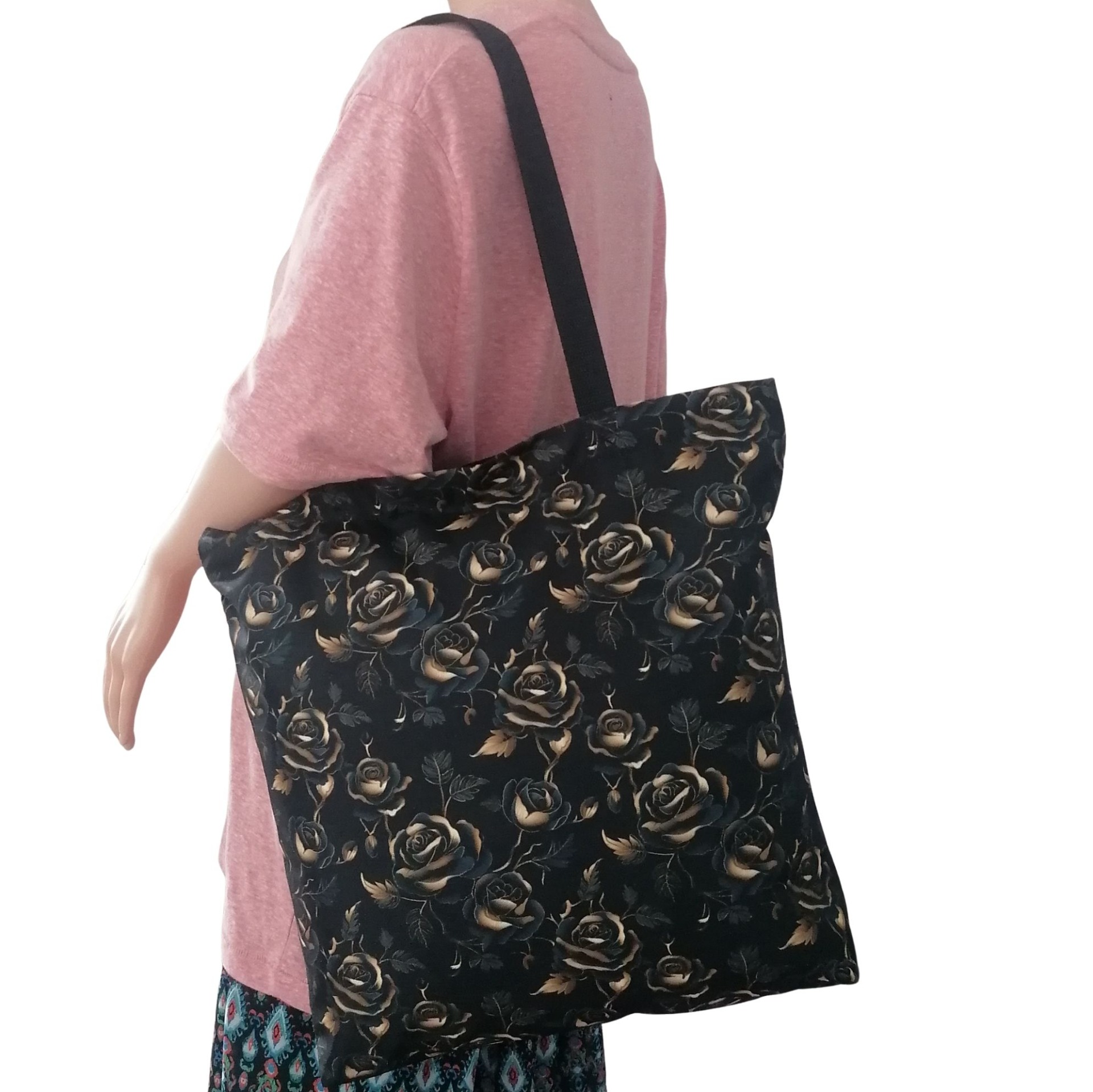 Prostorná látková nákupní taška s motivem růže, kterou využiješ na nákup, na cesty i jako lehkou tašku na každý den.