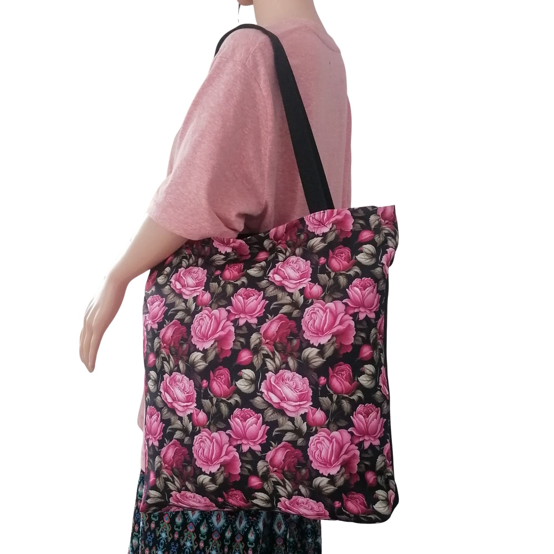 Prostorná látková nákupní taška s motivem růže, kterou využiješ na nákup, na cesty i jako lehkou tašku na každý den.