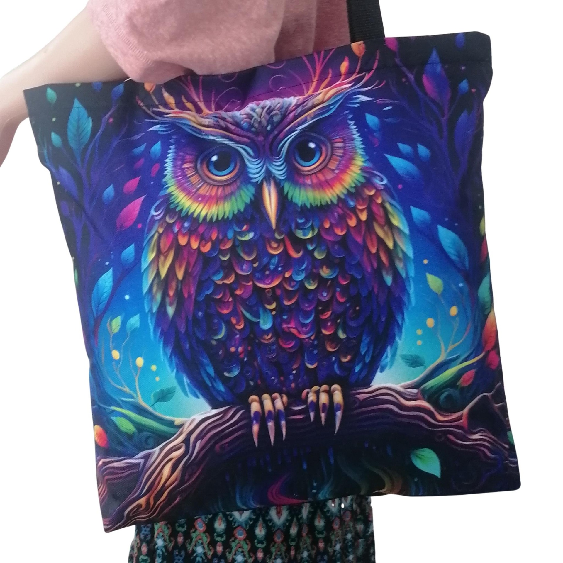 Prostorná látková nákupní taška s motivem sovy, kterou využiješ na nákup, na cesty i jako lehkou tašku na každý den.