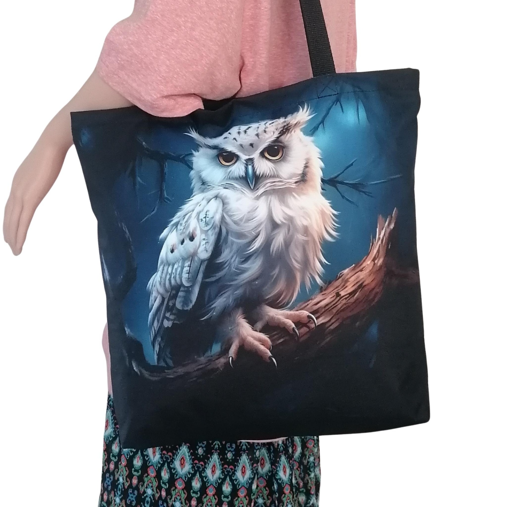 Prostorná látková nákupní taška s motivem moudré sovy, kterou využiješ na nákup, na cesty i jako lehkou tašku na každý den.