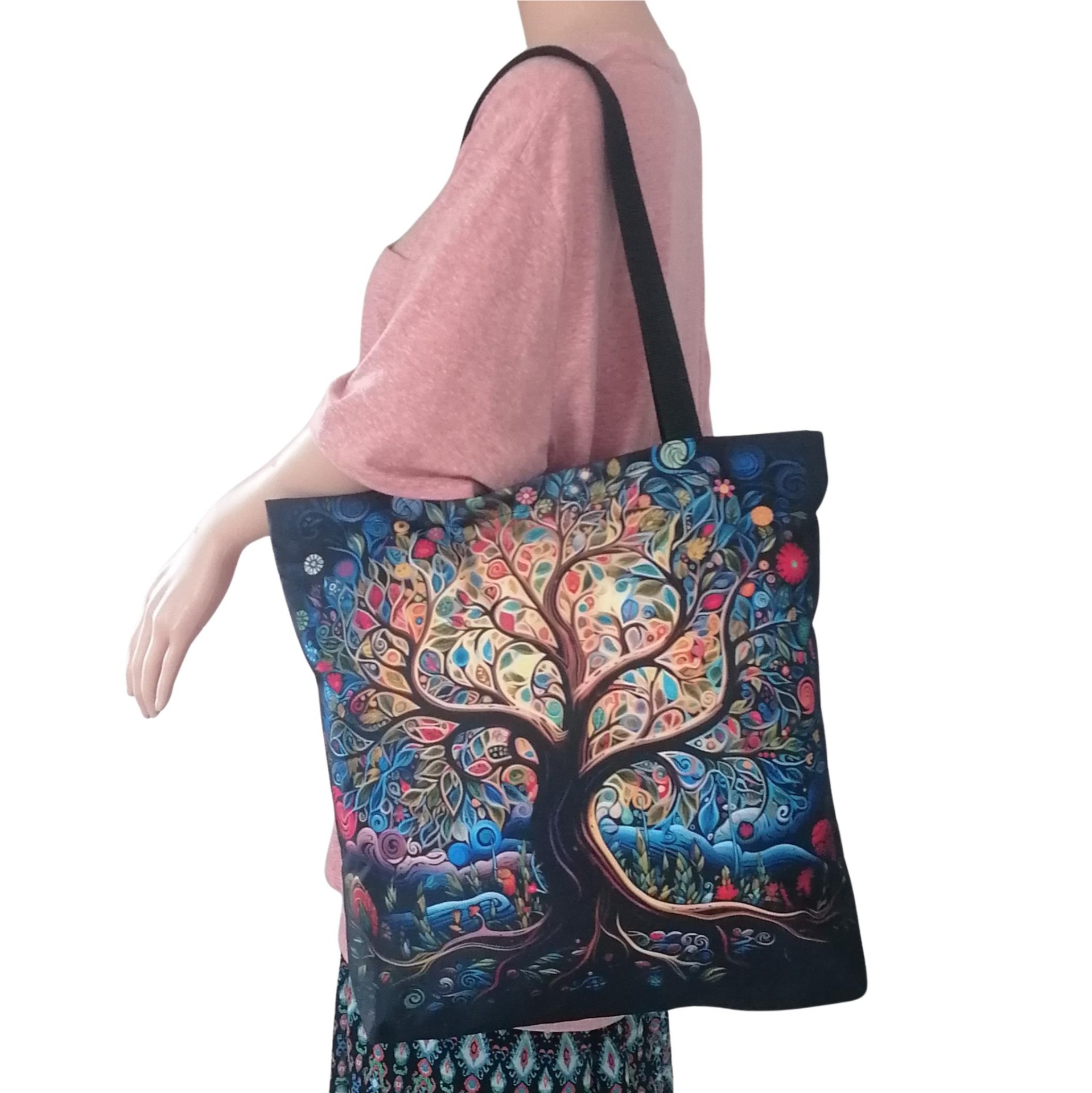 Prostorná látková nákupní taška s motivem stromu života, kterou využiješ na nákup, na cesty i jako lehkou tašku na každý den.