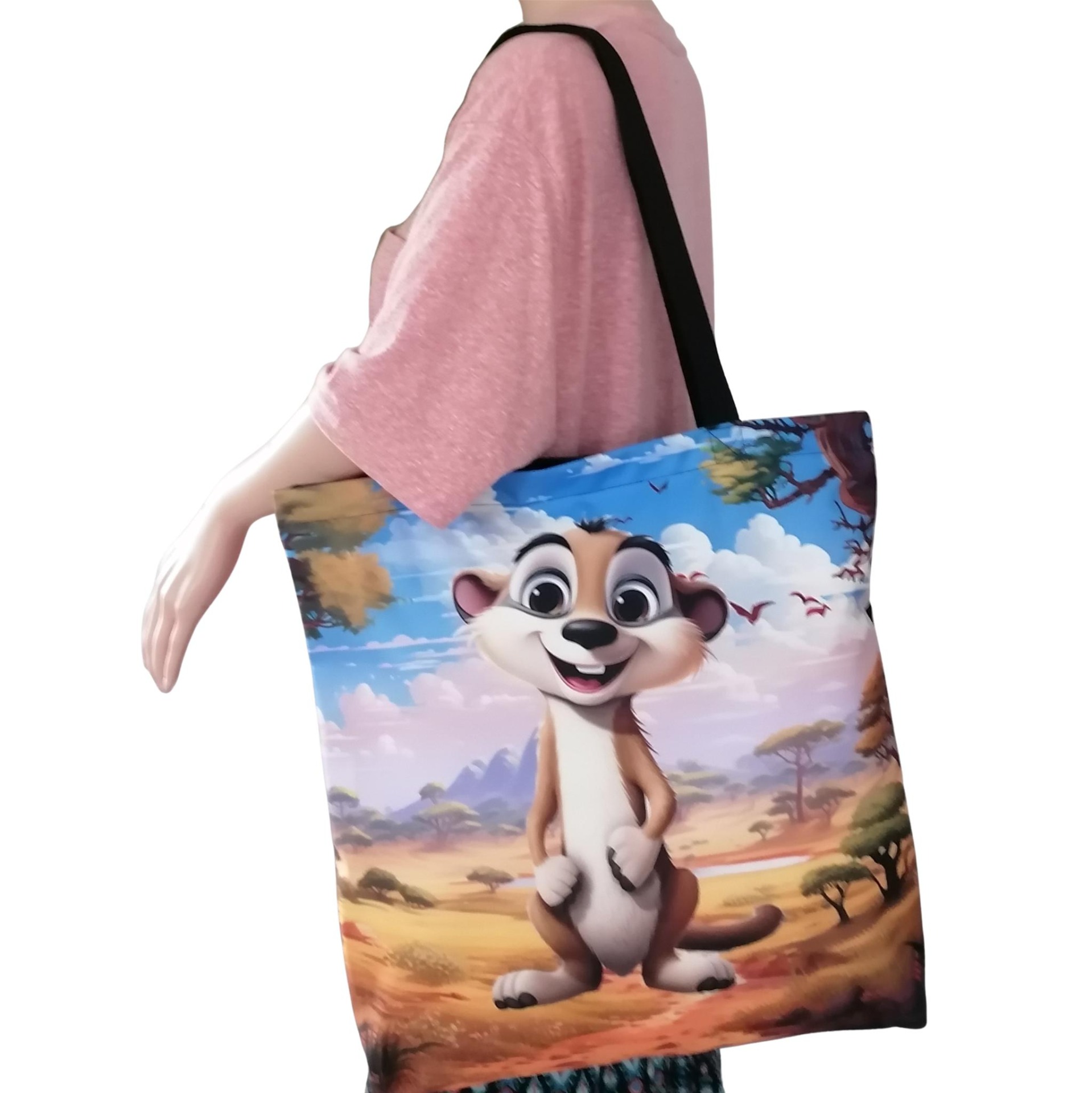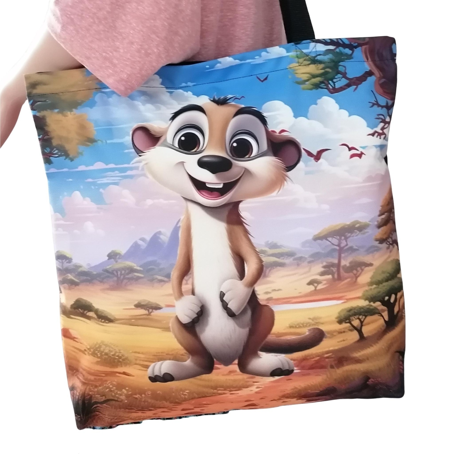 Prostorná látková nákupní taška s motivem surikaty, kterou využiješ na nákup, na cesty i jako lehkou tašku na každý den.
