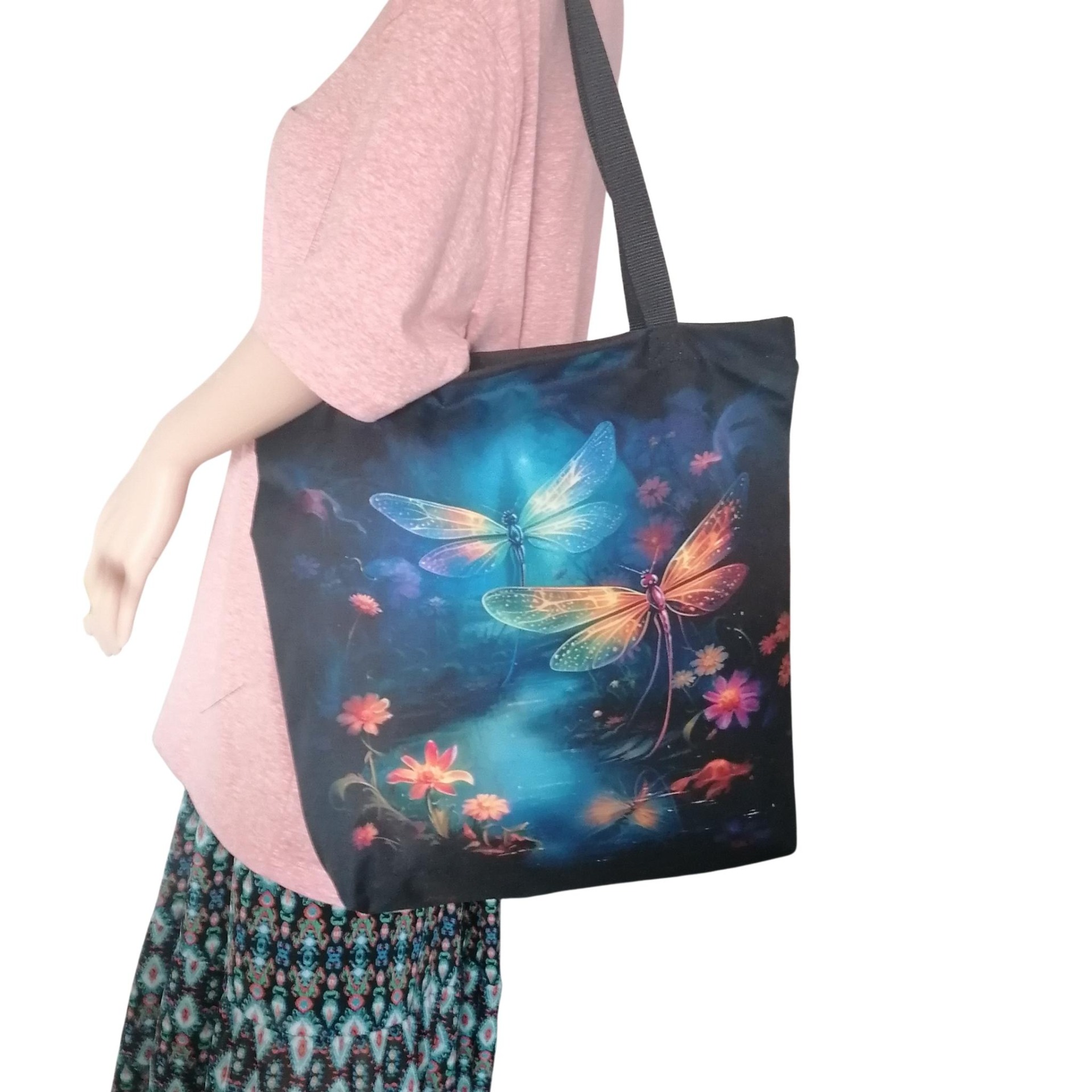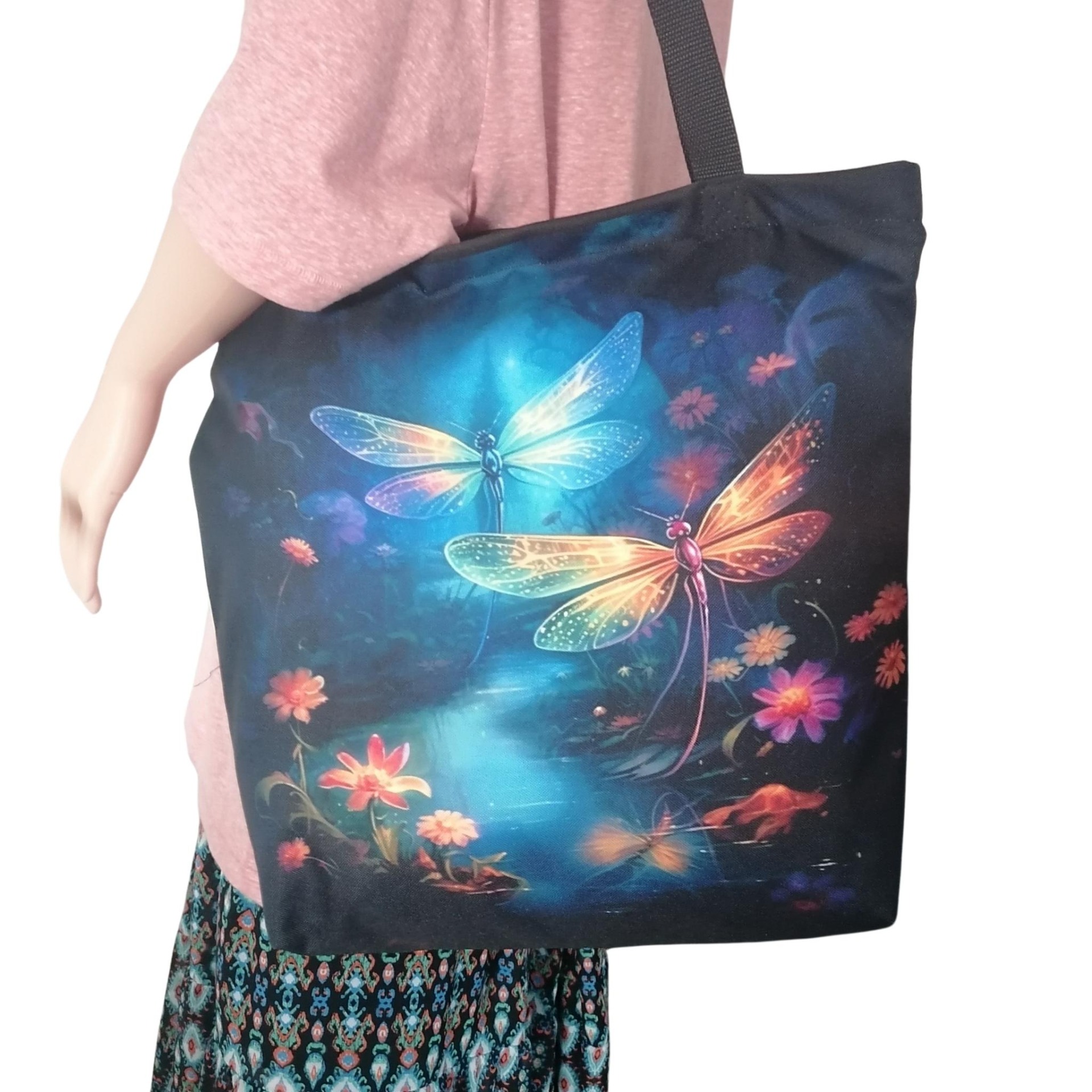 Prostorná látková nákupní taška s motivem dokonalého světa vážek, kterou využiješ na nákup, na cesty i jako lehkou tašku na každý den.