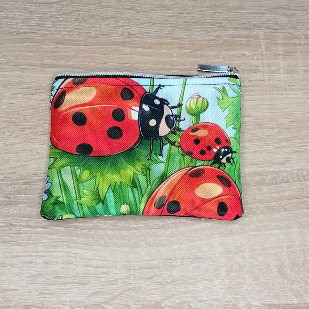 Pouzdro, taška, batoh. Berušky v trávě.
