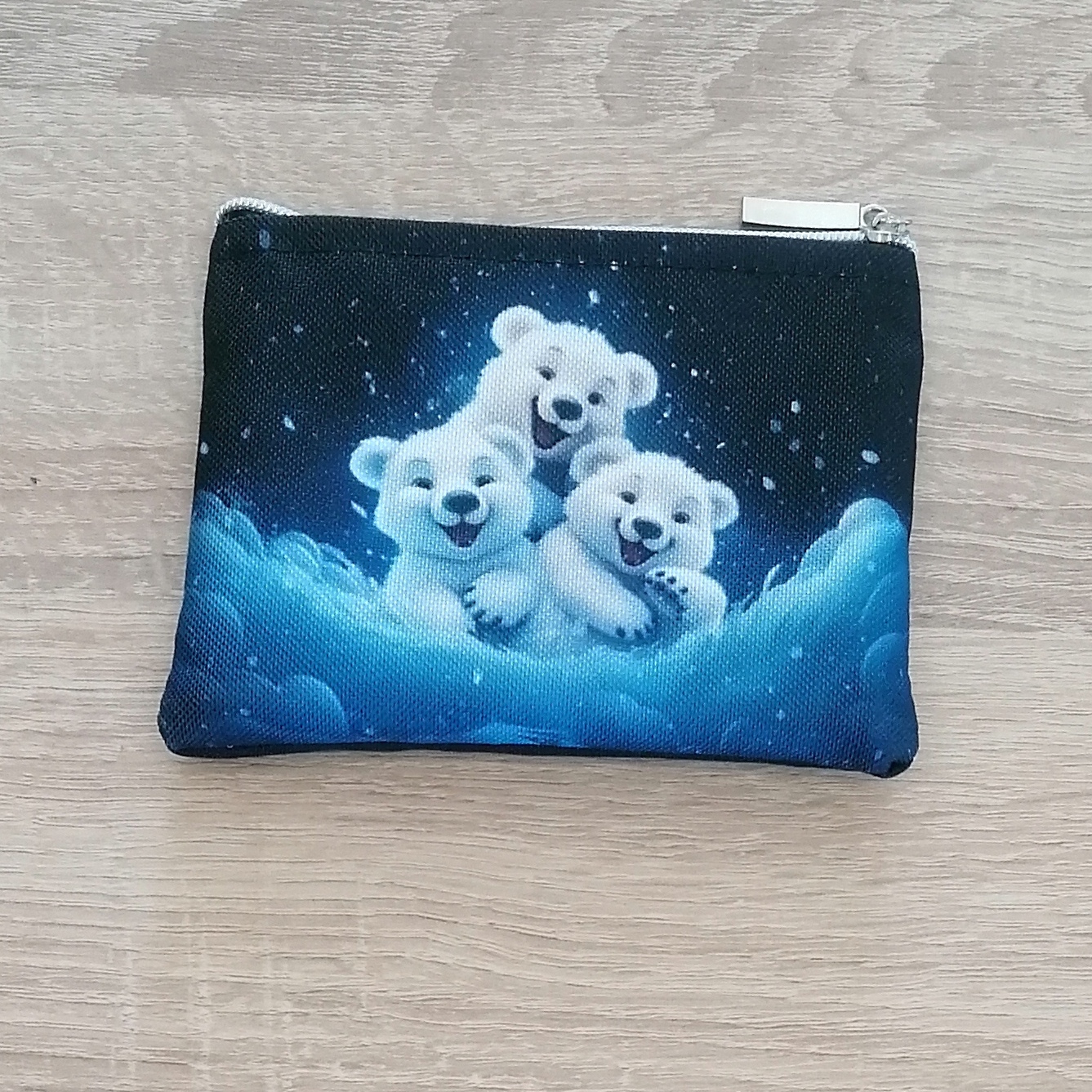 Pouzdro, taška, batoh. Trojce bílých medvídků
