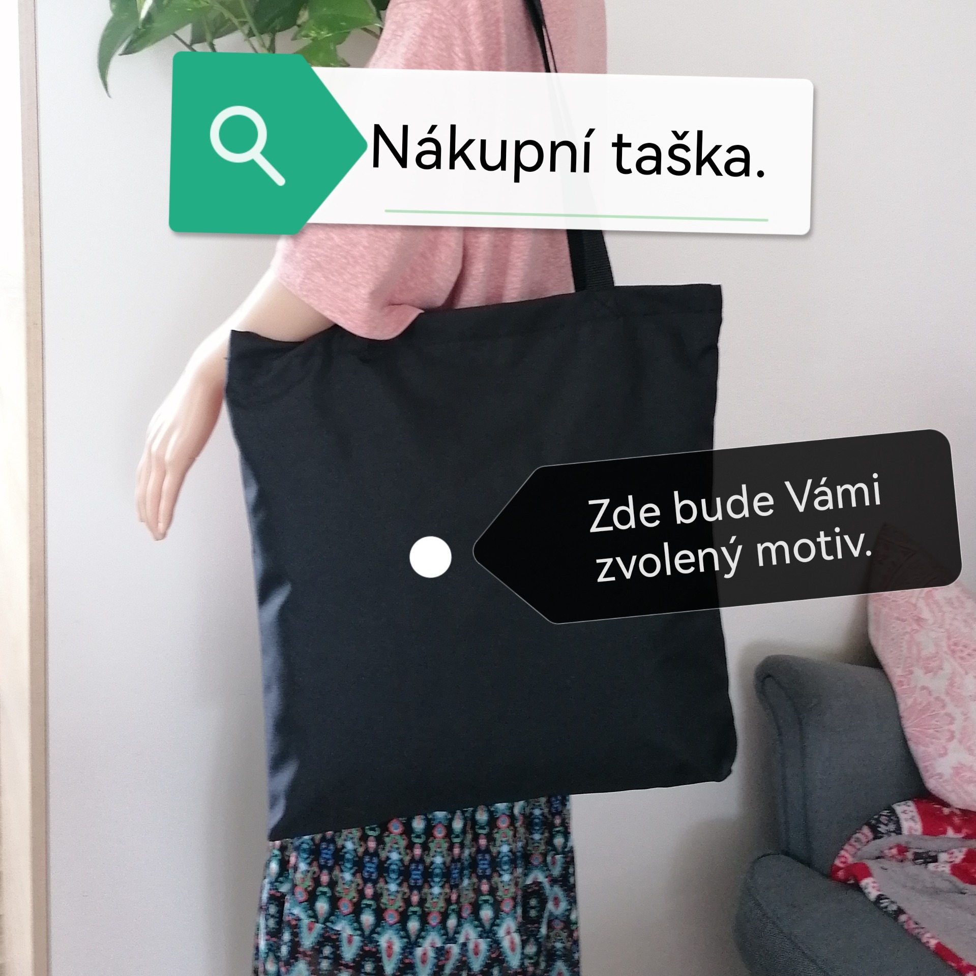 Rozměr tašky: šířka 40 x 36 cm + dno 10 cm. Délka popruhů je cca 60 cm vhodná na rameno, případně do ruky dle výšky postavy. Taška byla při focení vycpána polštářem 40 x 40 cm. Přední strana se zvoleným motivem/obrázkem, zadní strana černá. Bonus: otevřená vnitřní kapsička 12 x 18 cm. Dárek: k této tašce dostanete zdarma pouzdro 10 x 12 cm se shodným motivem.