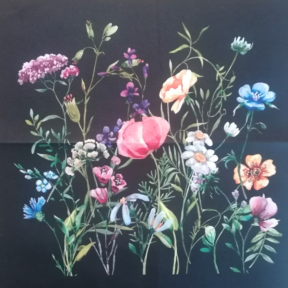 Povlak na polštář s autorským motivem kvítí na noční louce.