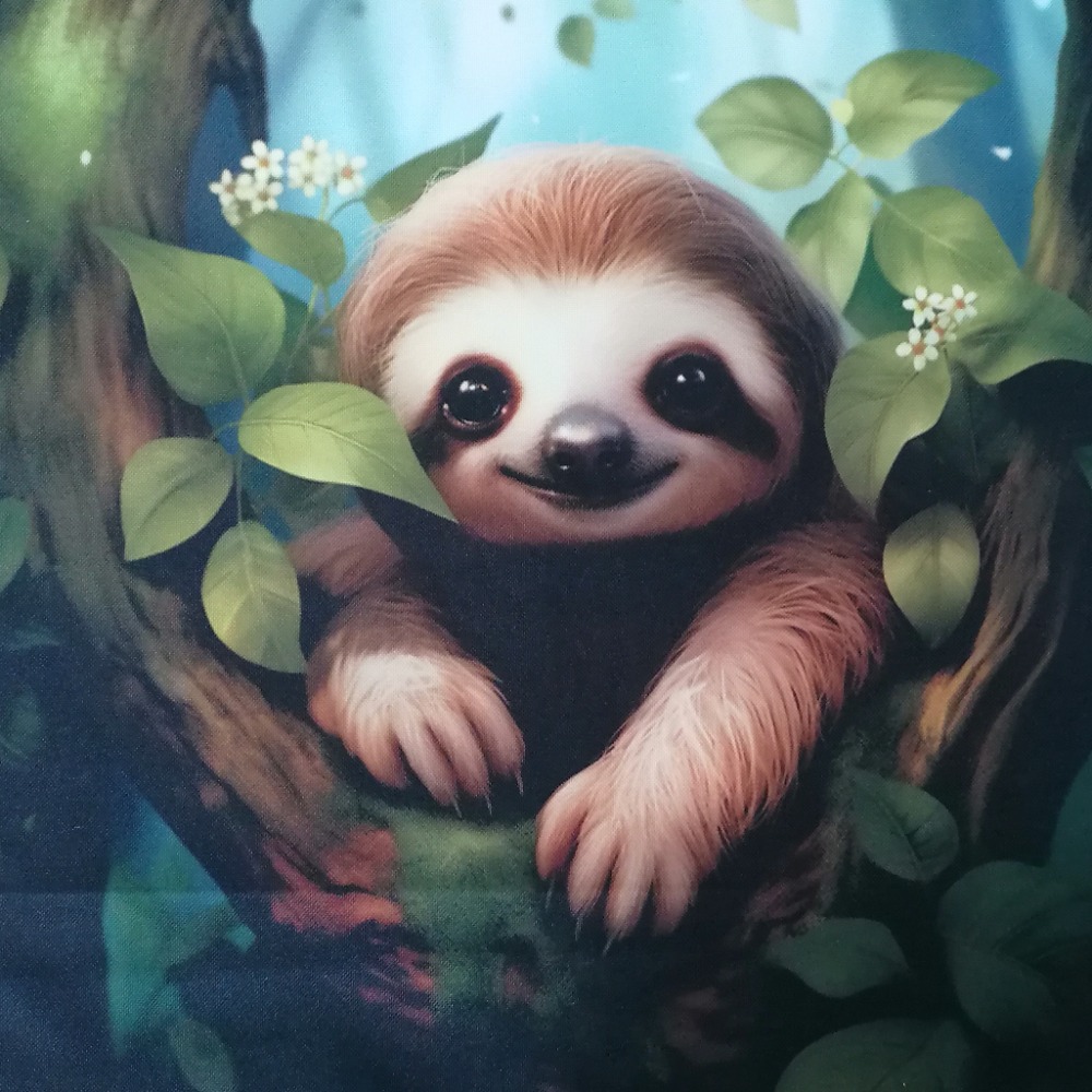 Povlak na polštář s autorským motivem vykukujícího lenochoda.