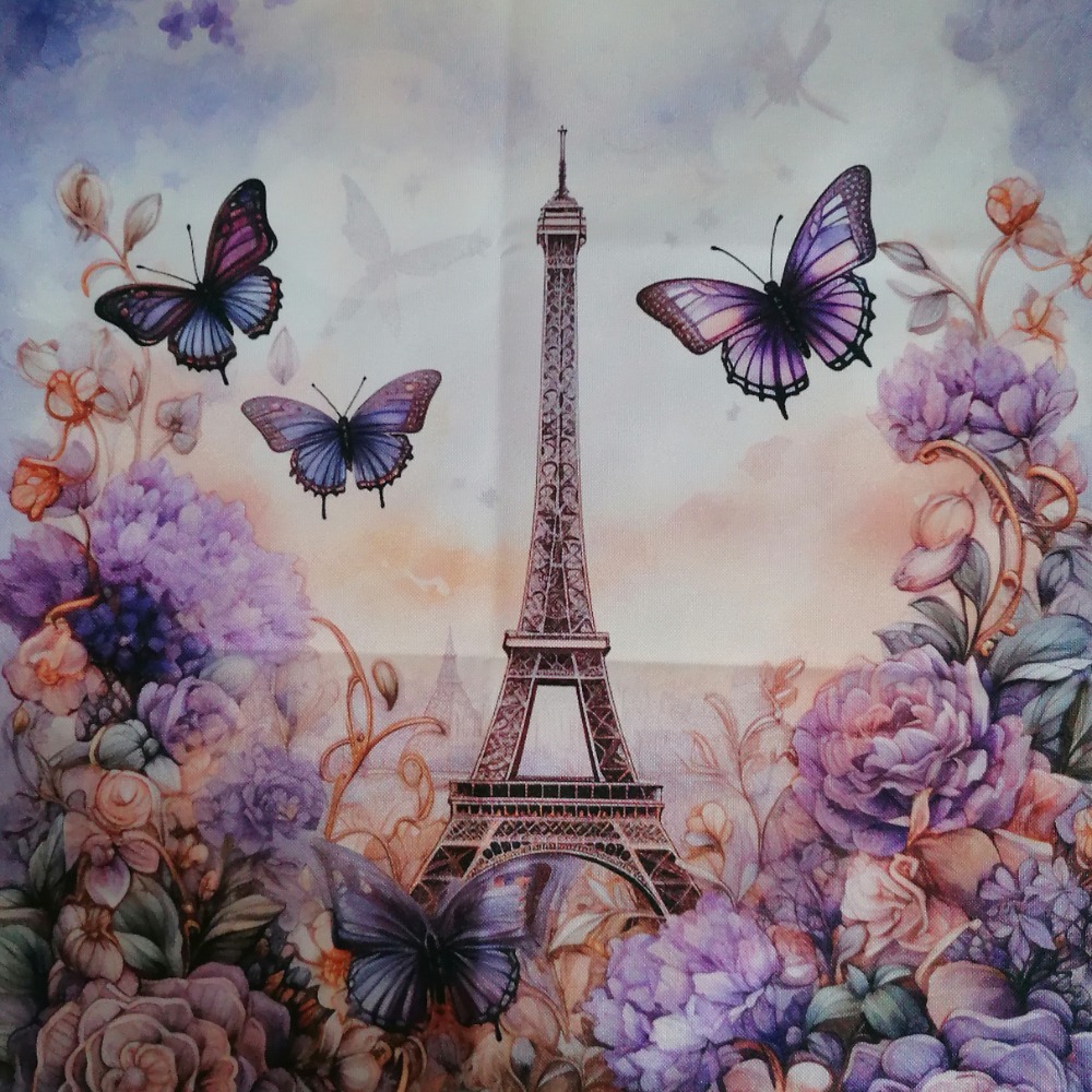 Povlak na polštář s autorským motivem věže v Paříži.