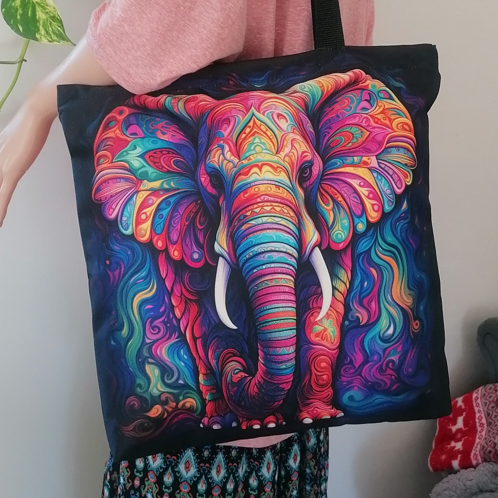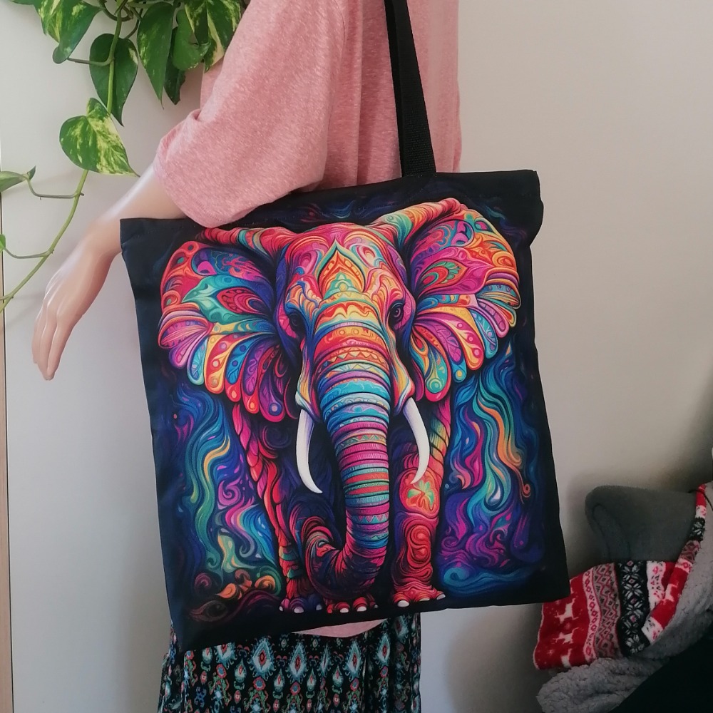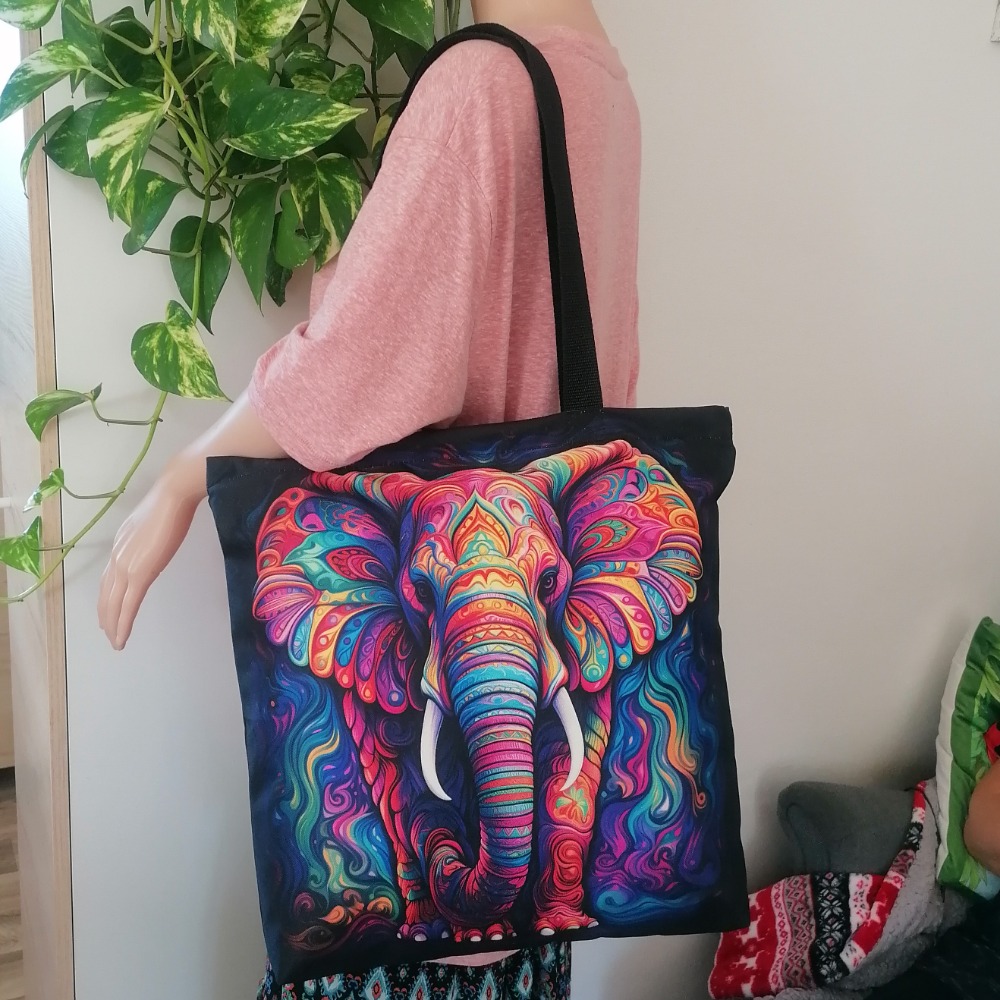 Rozměr tašky: šířka 40 x 36 cm + dno 10 cm. Délka popruhů je cca 60 cm vhodná na rameno, případně do ruky dle výšky postavy. Taška byla při focení vycpána polštářem 40 x 40 cm. Přední strana se zvoleným motivem/obrázkem, zadní strana černá.