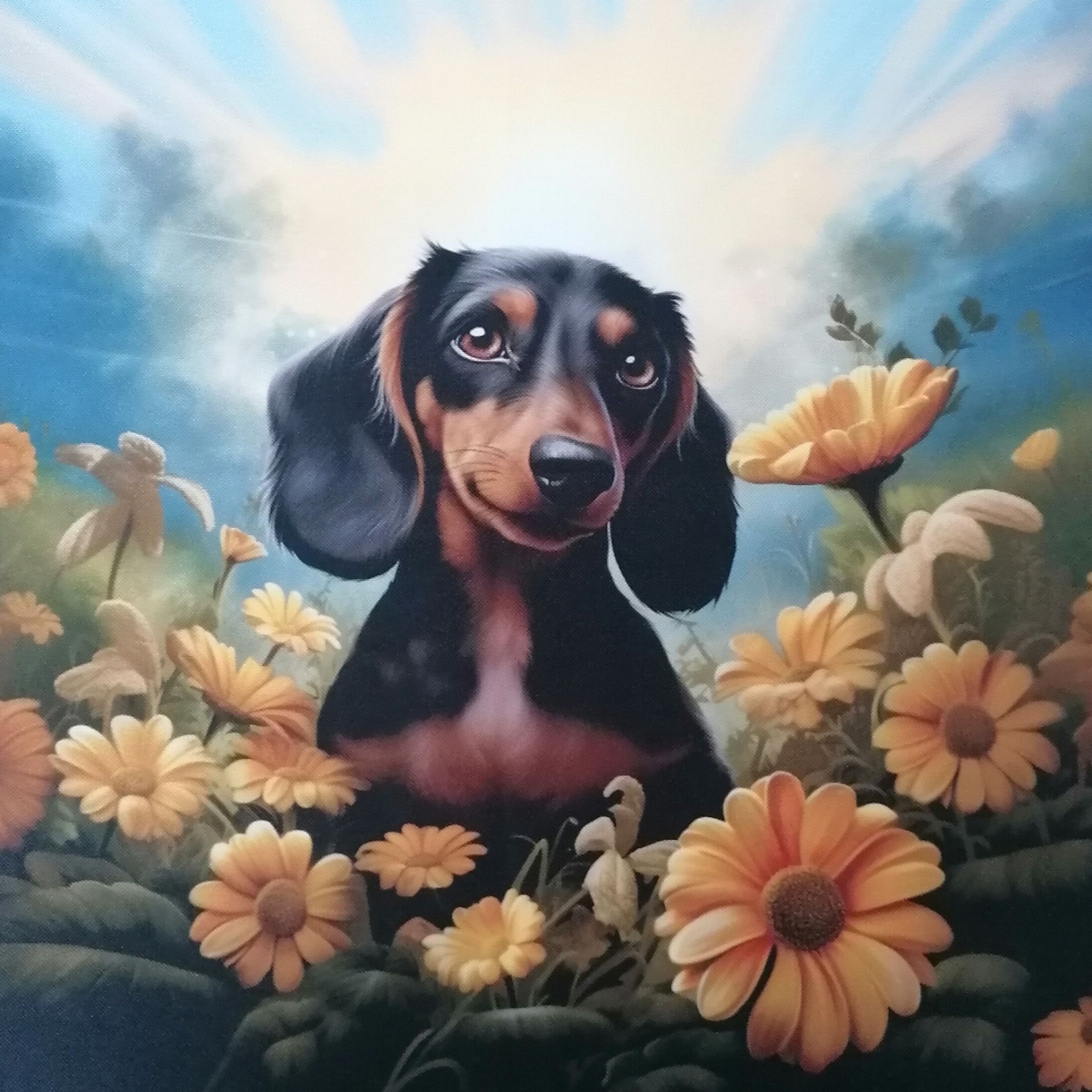 Zlatý retrívr je známý svou přátelskou povahou a nekonečnou radostí ze života. Je milující rodinný pes, který vytváří silné pouto se svým člověkem. Motiv vyzařuje pozitivní energii a přátelství.